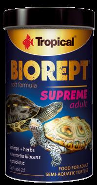 Biorept W se rovnoměrně vyvíjejí a jsou v dokonalé kondici. Určeno pro krmení ta kových druhů želv jako jsou: Apalone, Chry semys, Clemmys, Deirochelys, Glyptemys, Graptemys, Kinosternon, Malaclemys, Maure mys, Pelodiscus, Trachemys, Sternotherus.