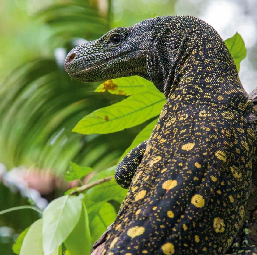 Varan Salvadoriův (Varanus salvadorii) také se mu říká krokodýl, z důvodu jeho velkých a ostrých zubů.