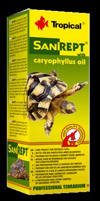 U vzhledu želvy se naše pozornost pře devším zaměřuje na ochrannou funkci krunýře – nejcharakterističtější rys této skupiny plazů. Pro fanoušky je důležitý zdravý vzhled krunýře a jeho estetická hod nota. Krunýř želvy je odrazem její kondice. Špatná dieta, nedostatek vitamínů a mine rálních složek a problémy s ledvinami zatí ženými nadměrným množstvím bílkovin, vedou k nevratným deformacím krunýře. Proto se péče o krunýř želvy skládá z mnoha faktorů. Zvířata by měla mít zajištěny vhod né životní podmínky (velké a čisté terárium, přiměřenou vlhkost, teplotu a osvětlení a také UVB záření), pestrou a vyváženou di etu bohatou na vápník a vitamin D3. Krunýř je nutné udržovat v čistotě. Po každé kou peli suchozemských želv doporučujeme osvěžit krunýř přípravkem Sanirept s hřebíčkovým olejem. Tímto způsobem získá krásný lesk a zdravý vzhled. Hřebíčkový olej obsažený v přípravku chrání, odstraňuje ne čistoty, osvěžuje a složky v něm obsažené krunýř také vyživují.