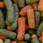16 formas de alimentos que varían en forma, tamaño, flotabilidad y estructura el granulado extruido más pequeño con un diámetro de 0,5 mm los palitos extruidos más pequeños con un diámetro de 0,4 mm