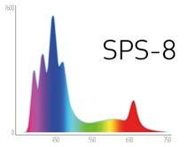 O SPS-8 oferece um maior nível de controlo (8 canais) e níveis PAR mais elevados com a inclusão de mais brancos e vermelhos quentes para imitar a luz dos recifes pouco profundos dos trópicos.