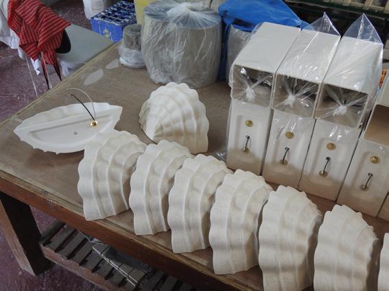 All Margrie Hunt lights are individually hand made at our studio in Antigua. The white earthenware clay we use produces a classic off white bisque finish. Ideal in itself, this finish also takes well to being painted potentially matching any decor.