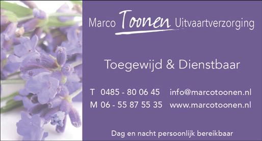 Wat heb je veel voor Sint Tunnis betekend. Behulpzaam voor degenen die een beroep op je deden. Jarenlang zorgzame begeleidster tijdens de Lourdesreizen. Actief bij de Heemkunde. Oprecht en actief betrokken bij de kerk. Eerste vrouw bij het Anthoniusgilde. Pieternel samen met broer Jo – als Thomasvaer – tijdens Nieuwjaarsbijeenkomsten in het verleden. En één met de Operette Gezellen waar jij aan de wieg stond en vijftig jaar met hart en ziel hebt meegezongen. Nellie, de laatste weken wilde je slapen, nu mag je slapen voor altijd. Slaap zacht.