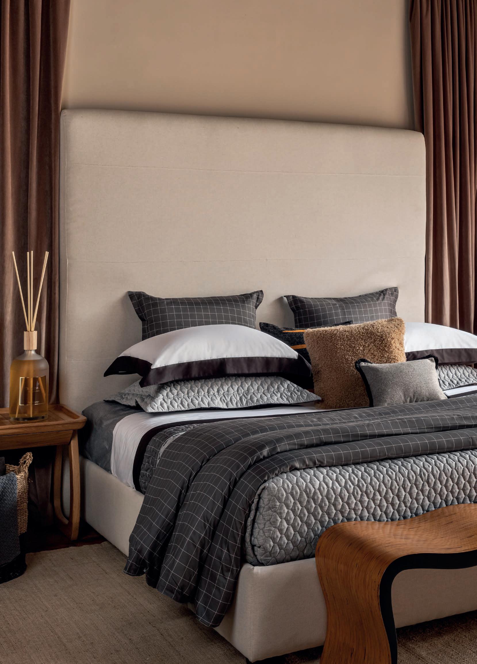 A modernidade do desenho geométrico inspira as linhas Ginzaa e Edoo, com nuances de fendi, matizes de cinza-chumbo, refletindo o primor do minimalismo, mas, ao mesmo tempo, aconchegante.