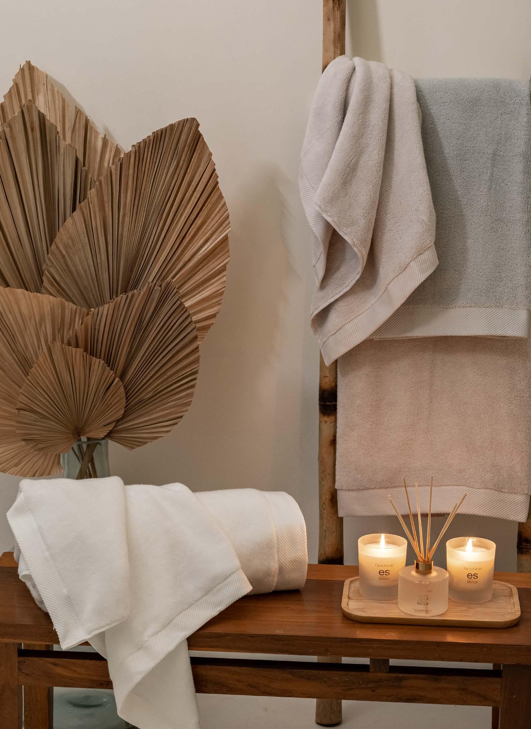 Elevate your daily ritual with delicate towels in tones that bring serenity and calm to the coldest season of the year. Whether with classic Portuguese or Turkish towels, or even bathrobes, our bath line is essential to end the day while valuing your well-being.