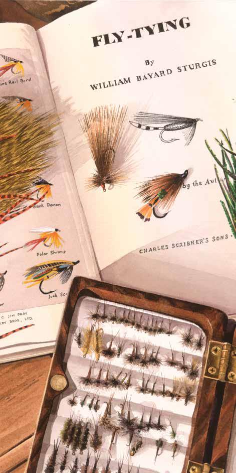 During assembly, A. J. suddenly realized the Encyclopedia his publishers, Holt, Rinehart and Winston, requested was growing exponentially. A wooden case contained the first 6,000 pages and weighed 80 pounds! When McClane accompanied a porter wheeling the masterpiece in its coffin-resembling case through the Newark airport to a cab, the flippant driver asked, “Whatcha got there, Mac, a body?” “No, it’s a book,” the scribe replied. It was quiet on the ride to the publisher. Global travel to collect difficult-to-obtain specimens was a regular part of the encyclopedia effort and McClane’s hand-picked artists had easels and paints on hand in every instance. The fish artwork illustrations, exquisite trout fly plates and pictures in this big book still entertain me for hours. And the same goes for effortlessly re-reading A. J.’s fly fishing, fly tying and casting descriptions. How some of the oncein-a-lifetime collected specimens were lost, accidentally drunken (tiny bluefin tuna larvae) in a bar and cooked by unsuspecting wives and housekeepers almost put the author and his artists into therapy.
