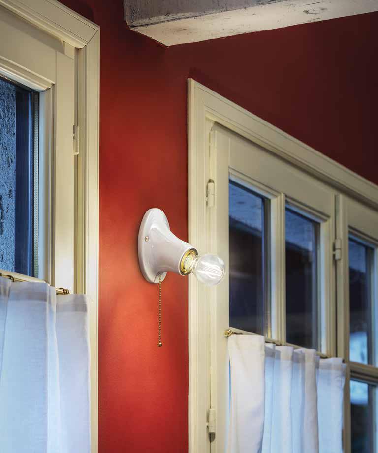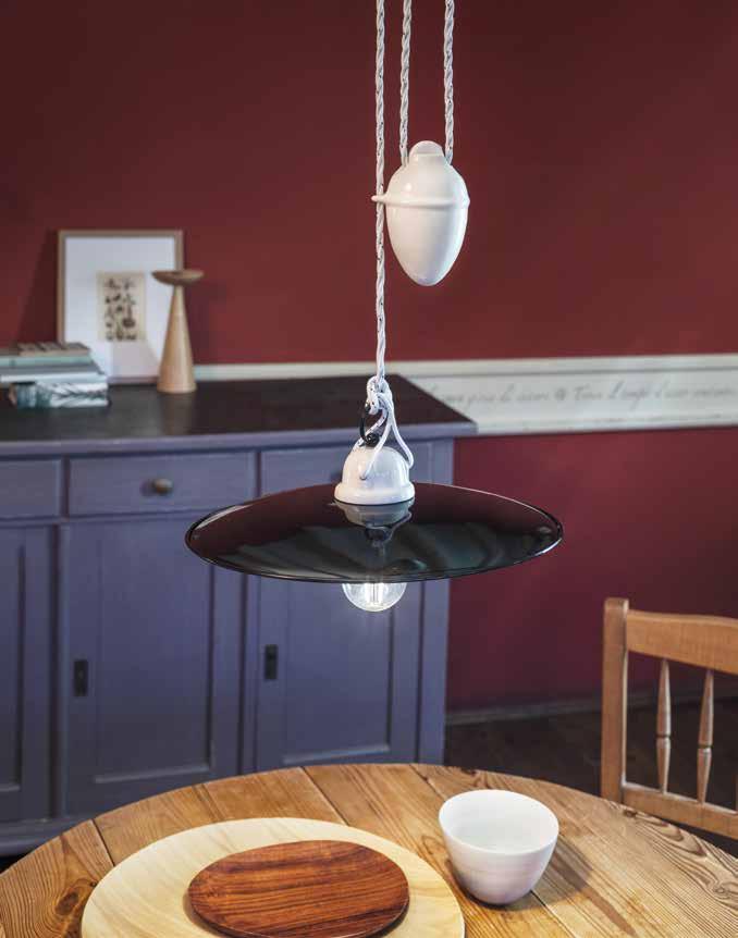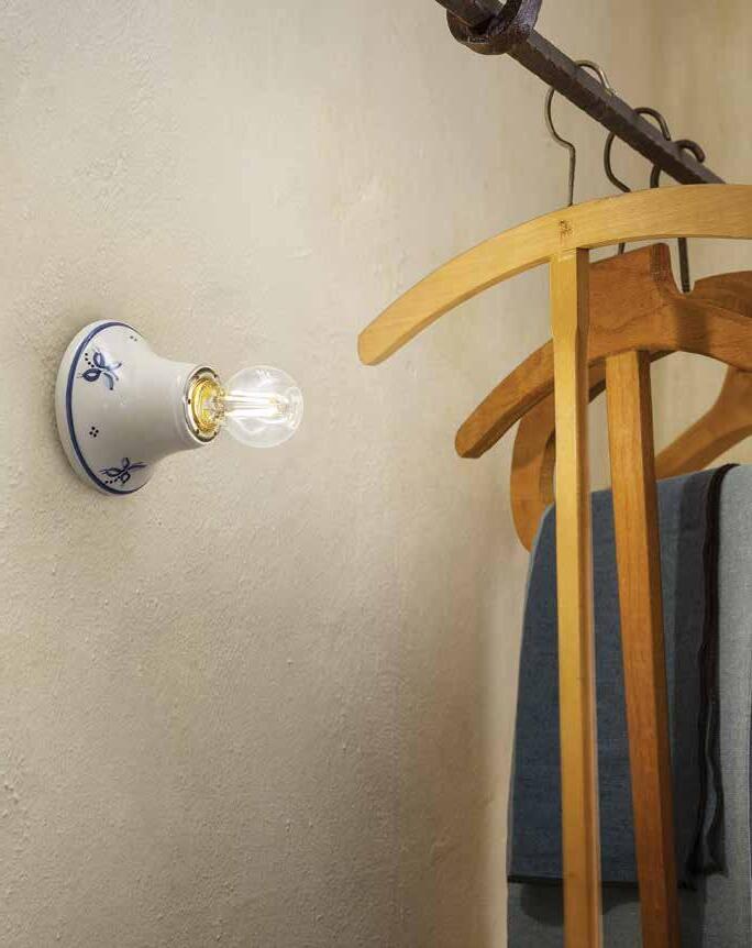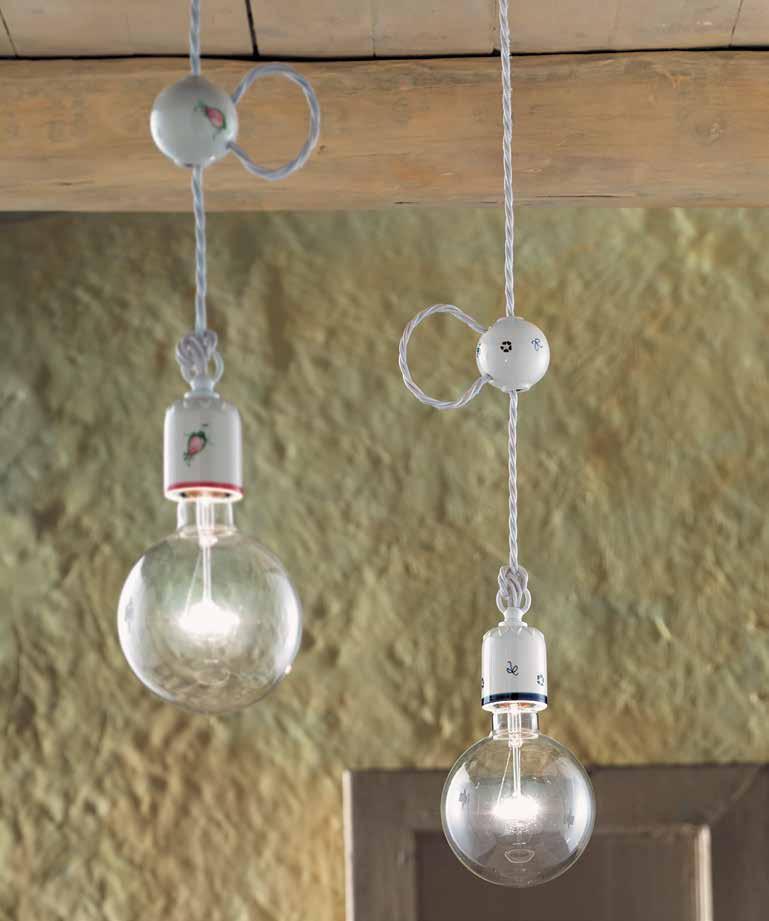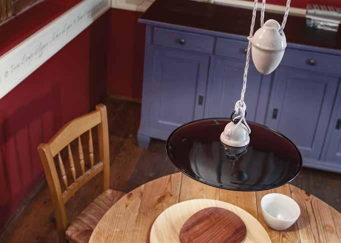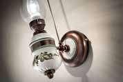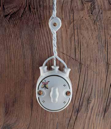 Together with the lamps that make up its collection, FERROLUCE provides all the accessories necessary for installation and they perfectly replicate the lighting systems of the late nineteenth-century. From the twisted electric cables to the switches produced in the same style of the time, to the fnely handpainted ceramic plates.
