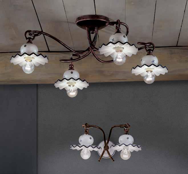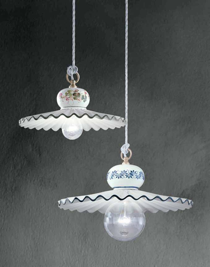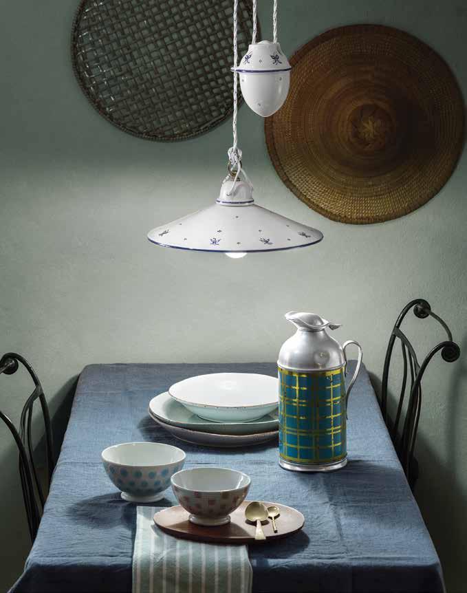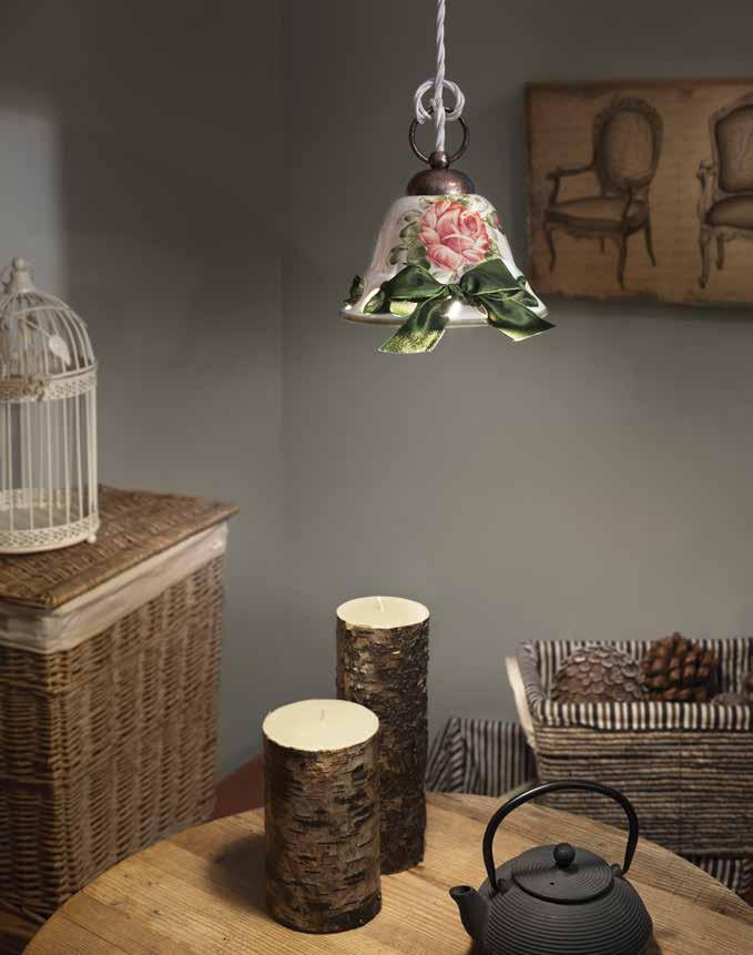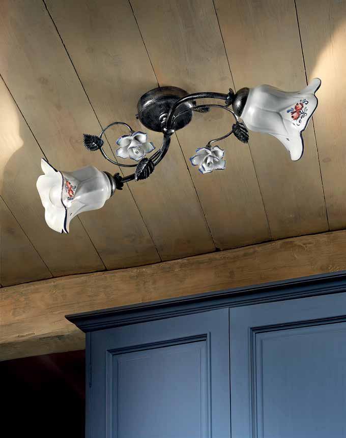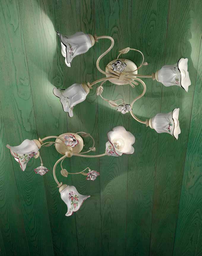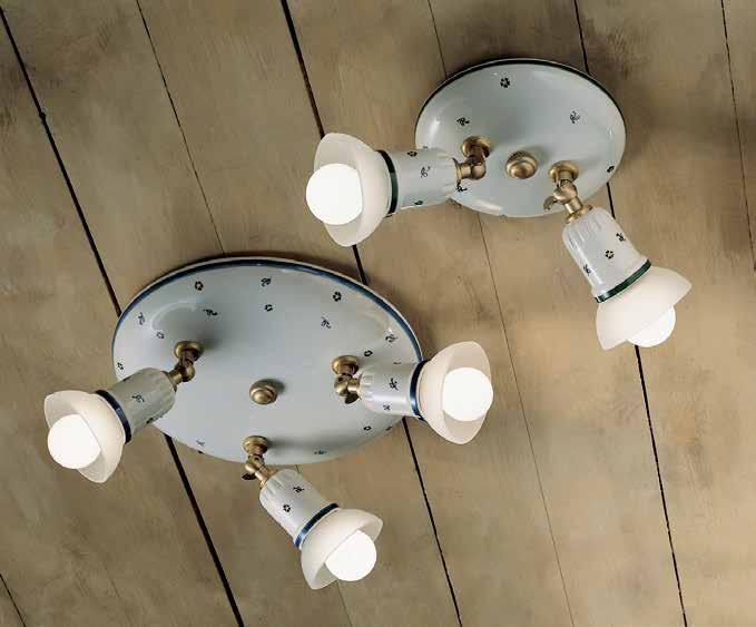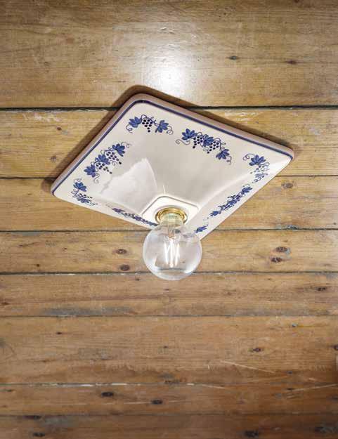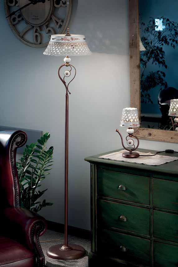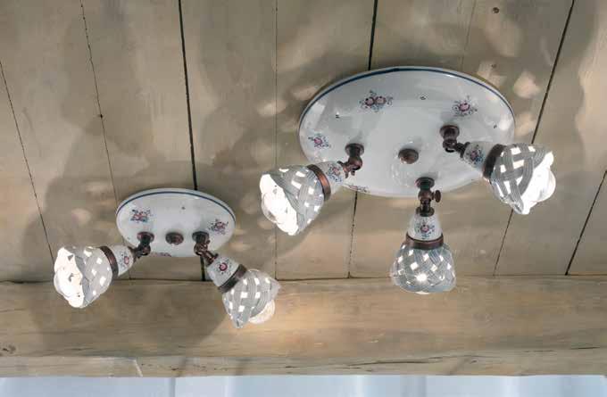 Our lamps, that are strictly hand-painted, create an enveloping familiar atmosphere. The ceramics are combined with mountings that are treated and refned with the same care and passion that the crafsmen of the past would have had.