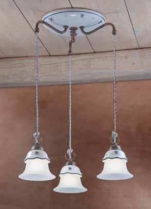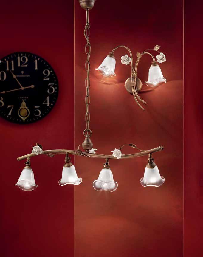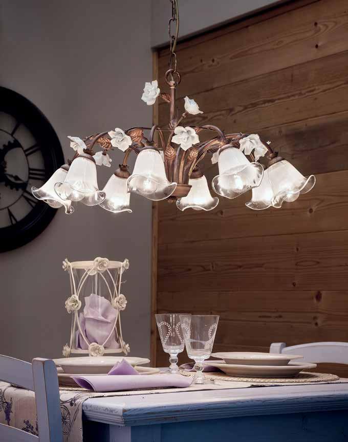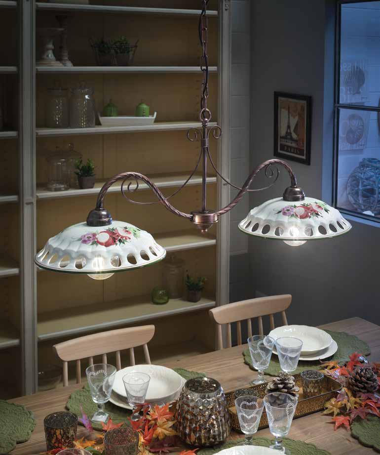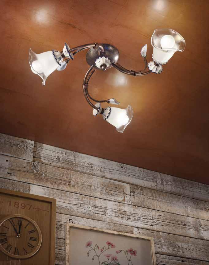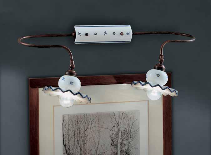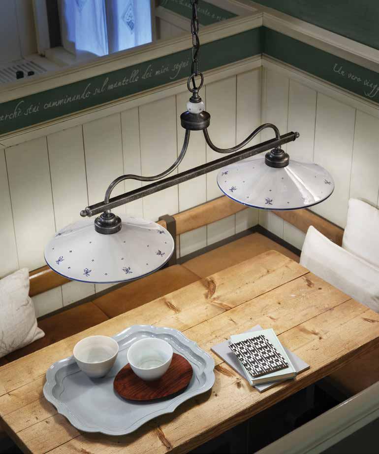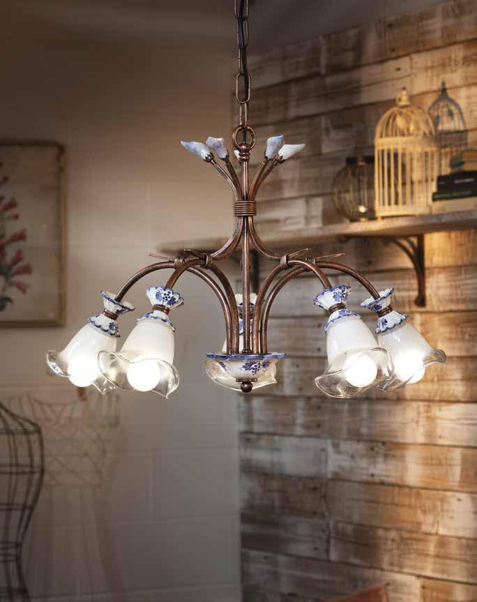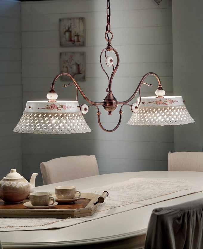 Our lamps, that are strictly hand-painted, create an enveloping familiar atmosphere. The ceramics are combined with mountings that are treated and refned with the same care and passion that the crafsmen of the past would have had.