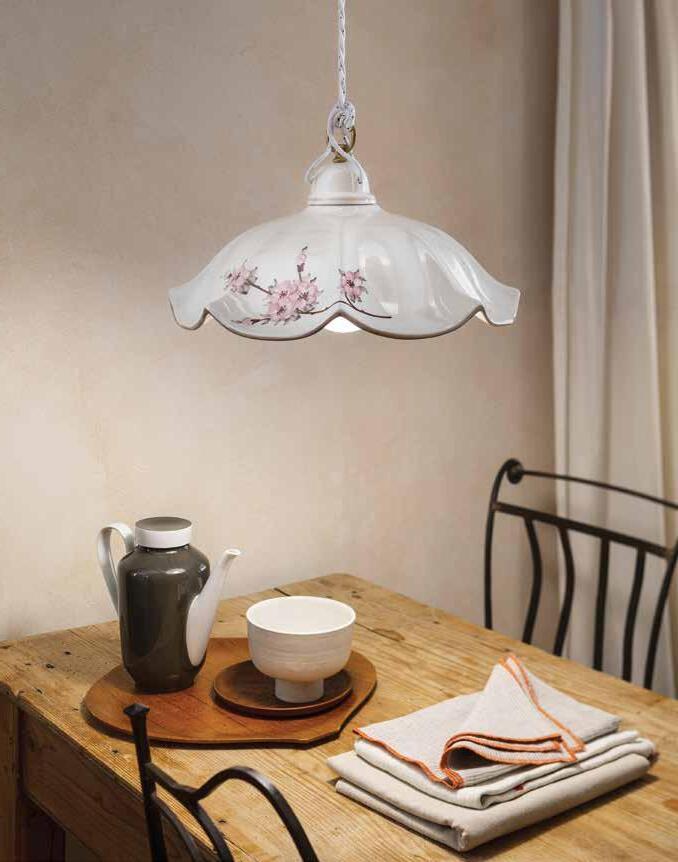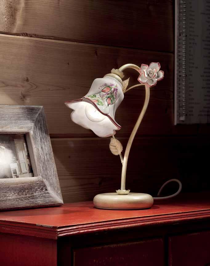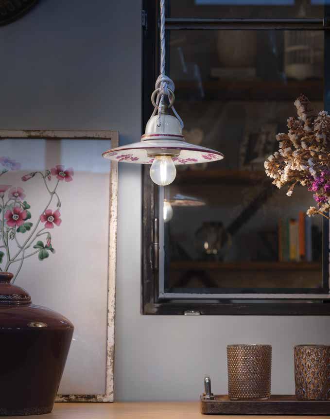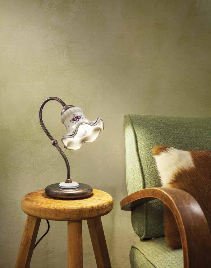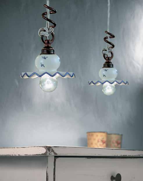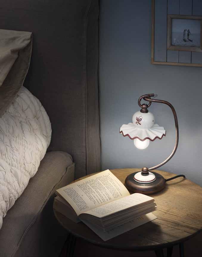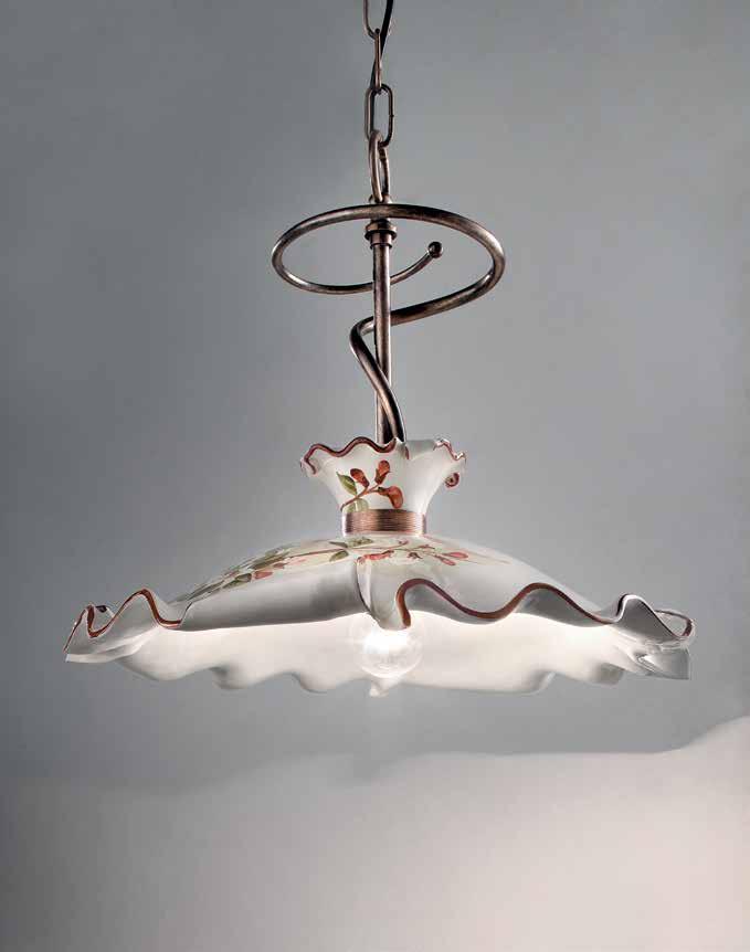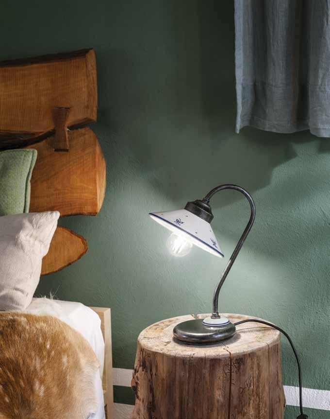 Le nostre lampade, decorate esclusivamente a mano, creano un’avvolgente atmosfera di familiarità.Le ceramiche sono abbinate a montature trattate e ri nite con la cura e la passione degli artigiani di un tempo.