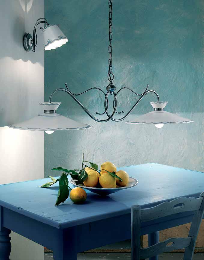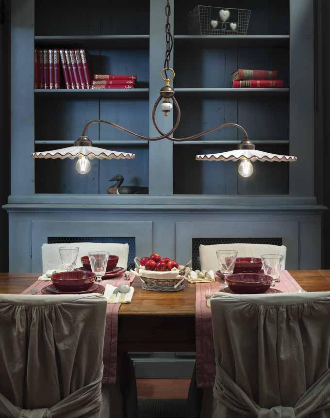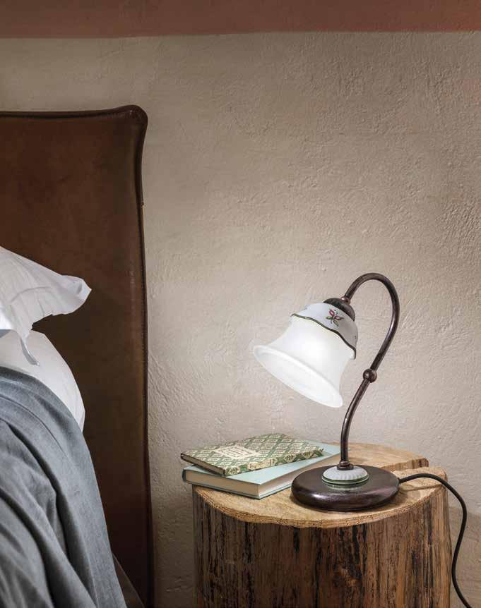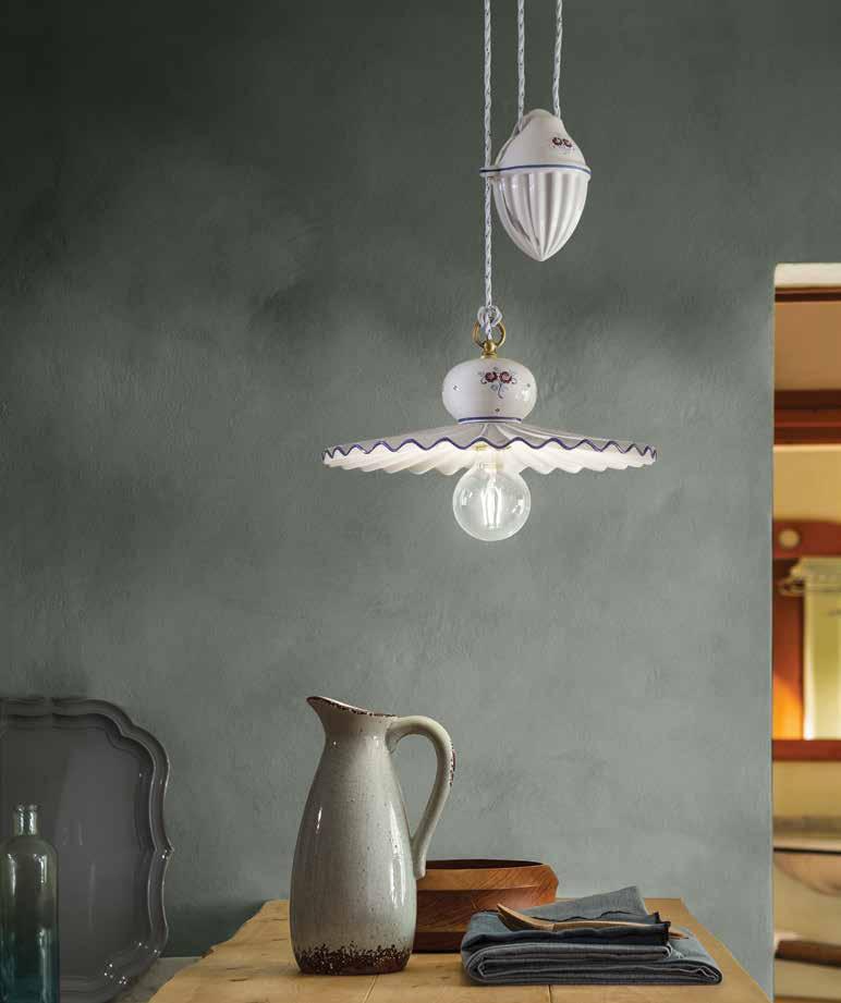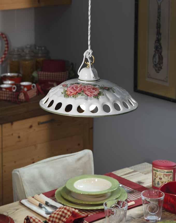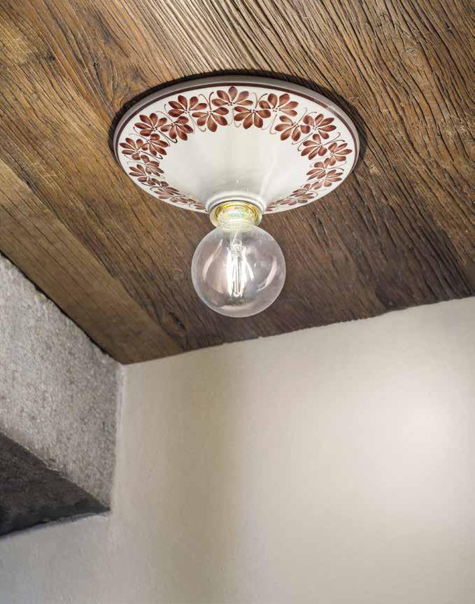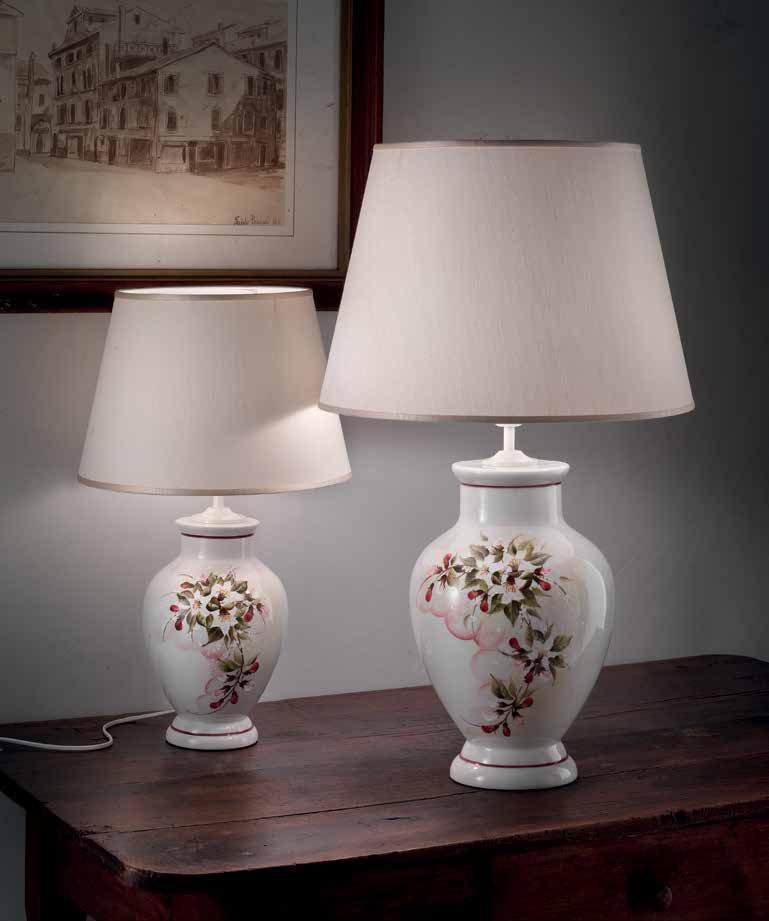 Le nostre lampade, decorate esclusivamente a mano, creano un’avvolgente atmosfera di familiarità.Le ceramiche sono abbinate a montature trattate e ri nite con la cura e la passione degli artigiani di un tempo.