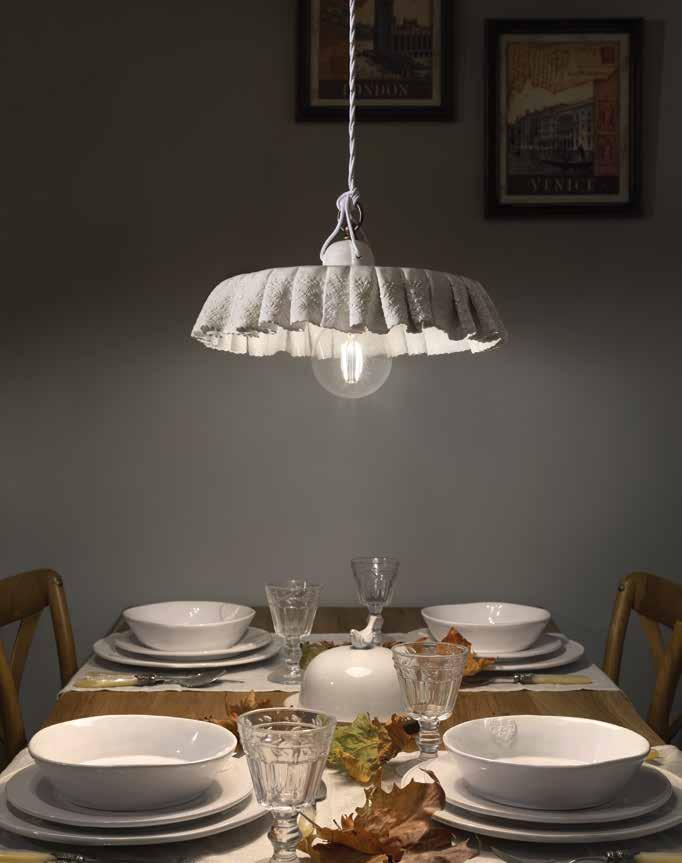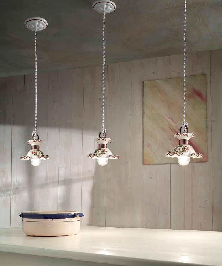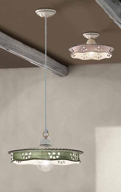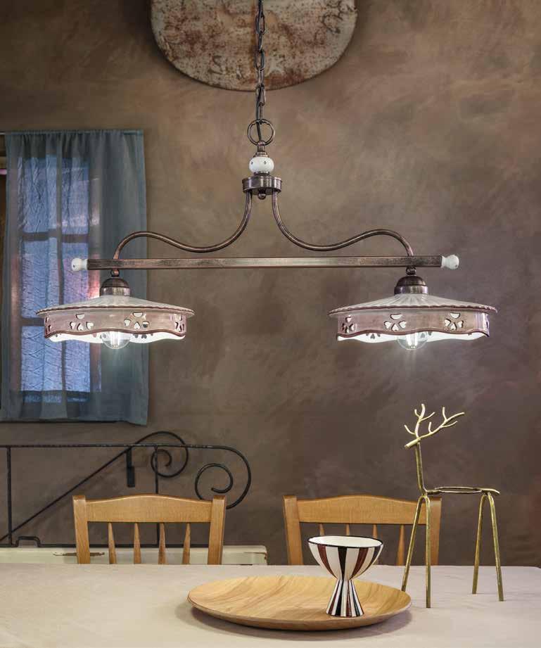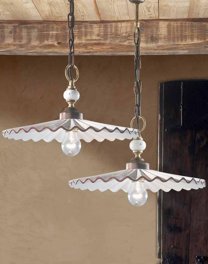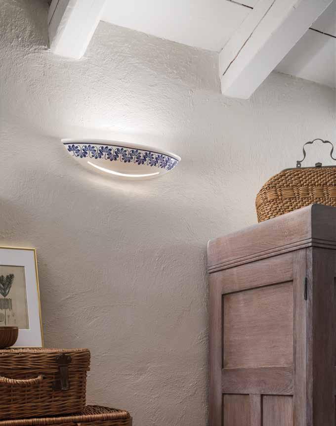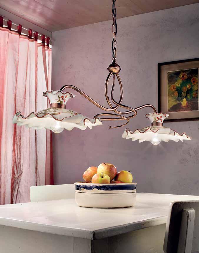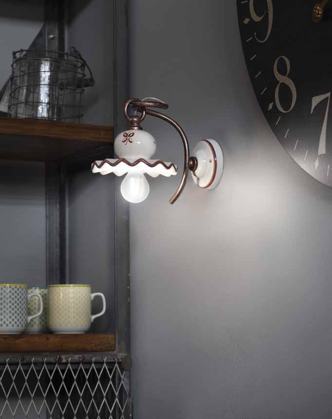 Le nostre lampade, decorate esclusivamente a mano, creano un’avvolgente atmosfera di familiarità.Le ceramiche sono abbinate a montature trattate e ri nite con la cura e la passione degli artigiani di un tempo.