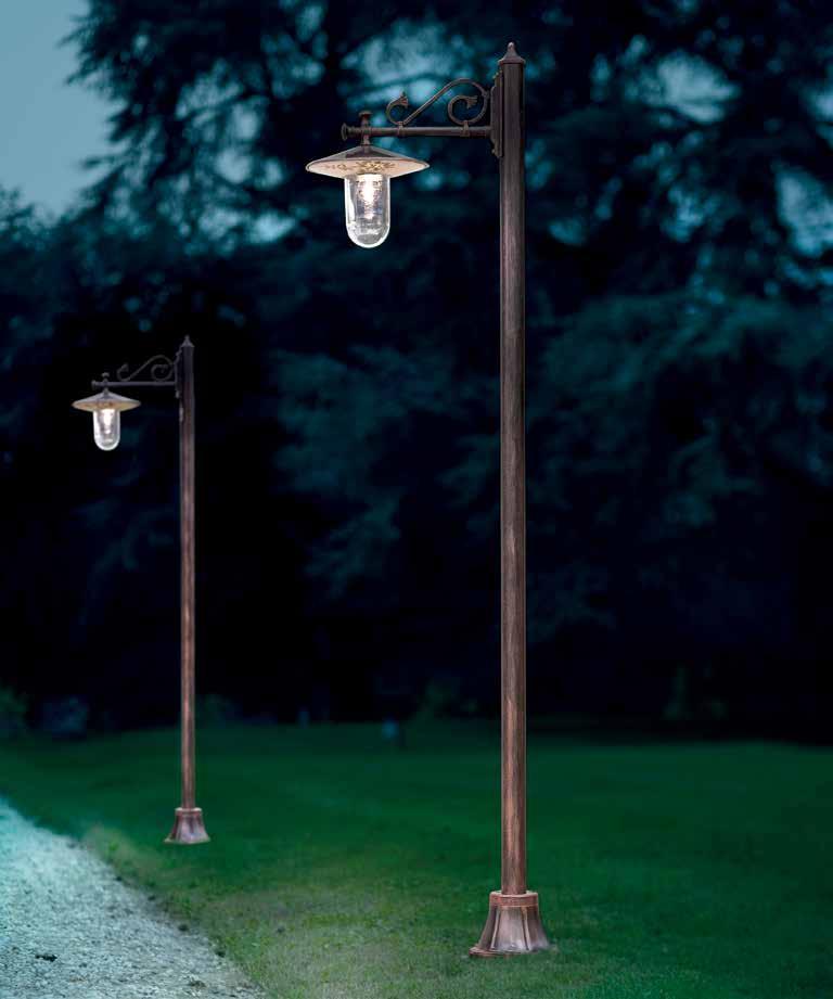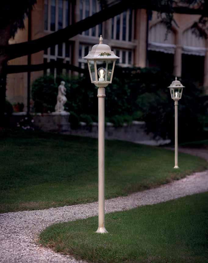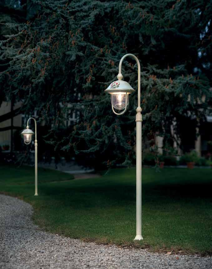 In white or green with gold nuances, the outdoor line Gorizia evokes the nineteenth-century Mitteleuropean heritage that the Friulian city was able to adopt and make their own. The ivy and fower decorations also recall the sweet warmth of the light given by gas lamps.