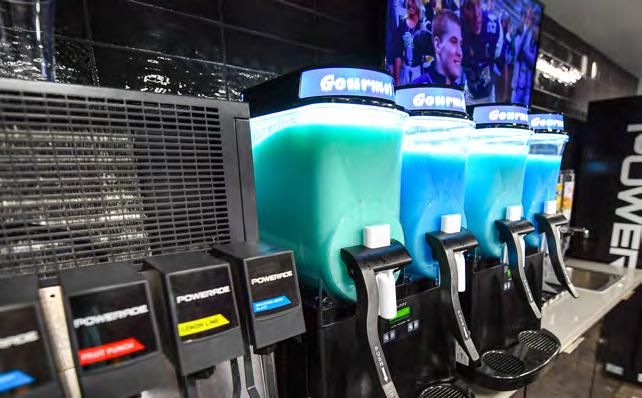 Troy football players have access to a nutrition room located directly next to the weight room. The nutrition room features a pair of Powerade slushy machines.