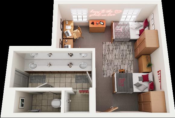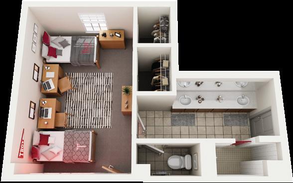 • Double suites are designed to accommodate two students with a shared bathroom.