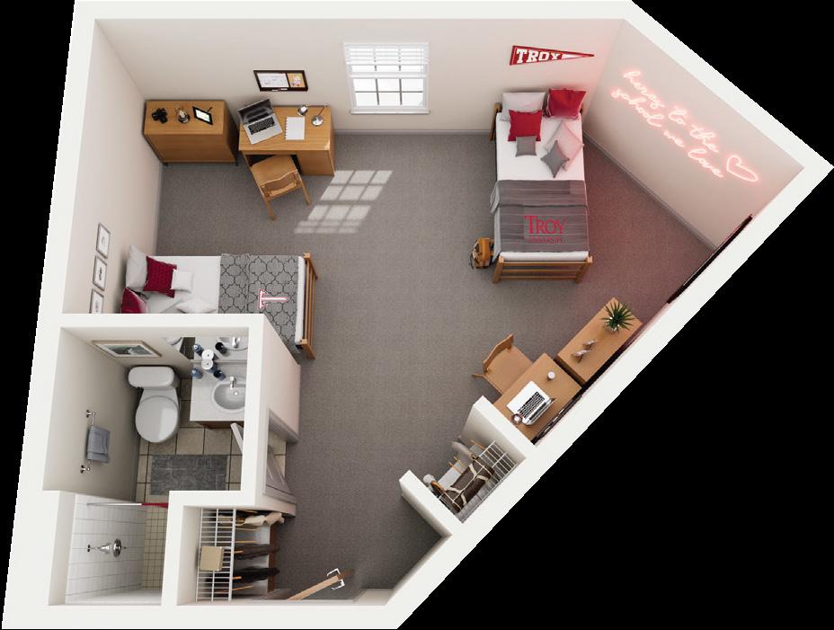 The Troy Campus is proud to offer a variety of unique housing options to accommodate all of your needs. You can choose from the following options: