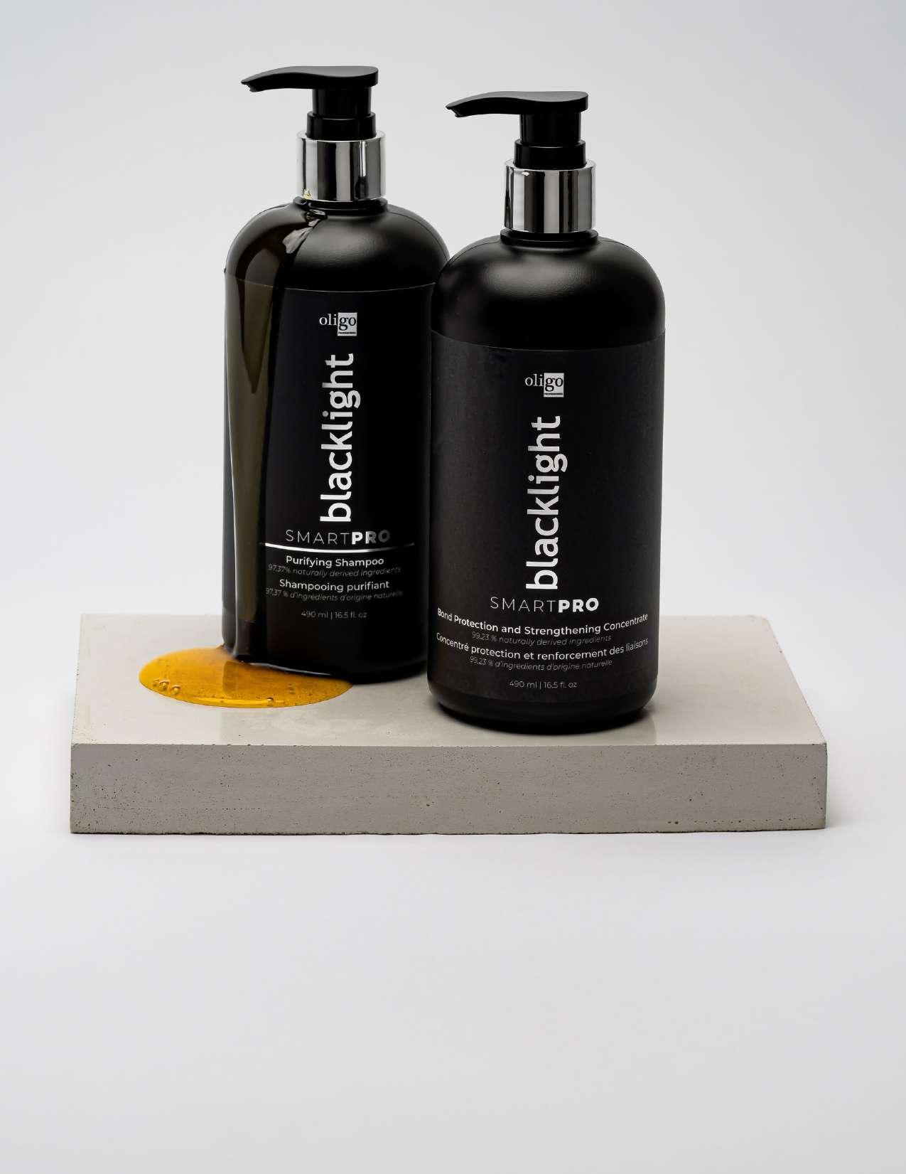 Step into the world of Blacklight by Oligo Professionnel, where innovation and artistry unite to redefine blonde perfection. Our signature Blacklight Lightening System effortlessly navigates the spectrum of blondes, making any shade imaginable attainable. Blacklight Smart, harnessing over 90% naturally derived ingredients for high-performance bond building designed for your blonde hair needs. Plus, elevate your haircare routine with our Care & Styling products and volumizing line.