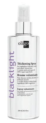 The Blacklight Thickening Spray increases fullness, adds instant lift, and creates volume with a smooth finish.