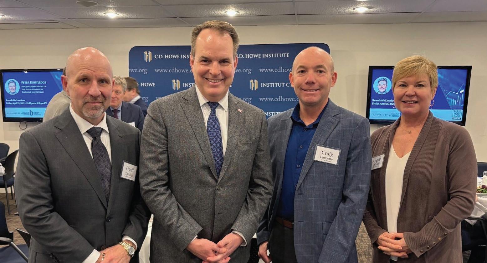 → Bringing employer priorities forward (Toronto): The Honourable Steven MacKinnon, Labour Minister (second from left), with THRC board member Geoff Topping, Future Fastfrate (far left); THRC’s CEO Angela Splinter and COO Craig Faucette.