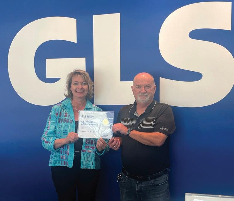 → Recognition for advancing women in the workplace: Rosenau Transport, a GLS company, signs onto the Women’s Leadership Accord (Calgary). CCO Rebecka Freels with Rosenau’s Western Canada Manager.