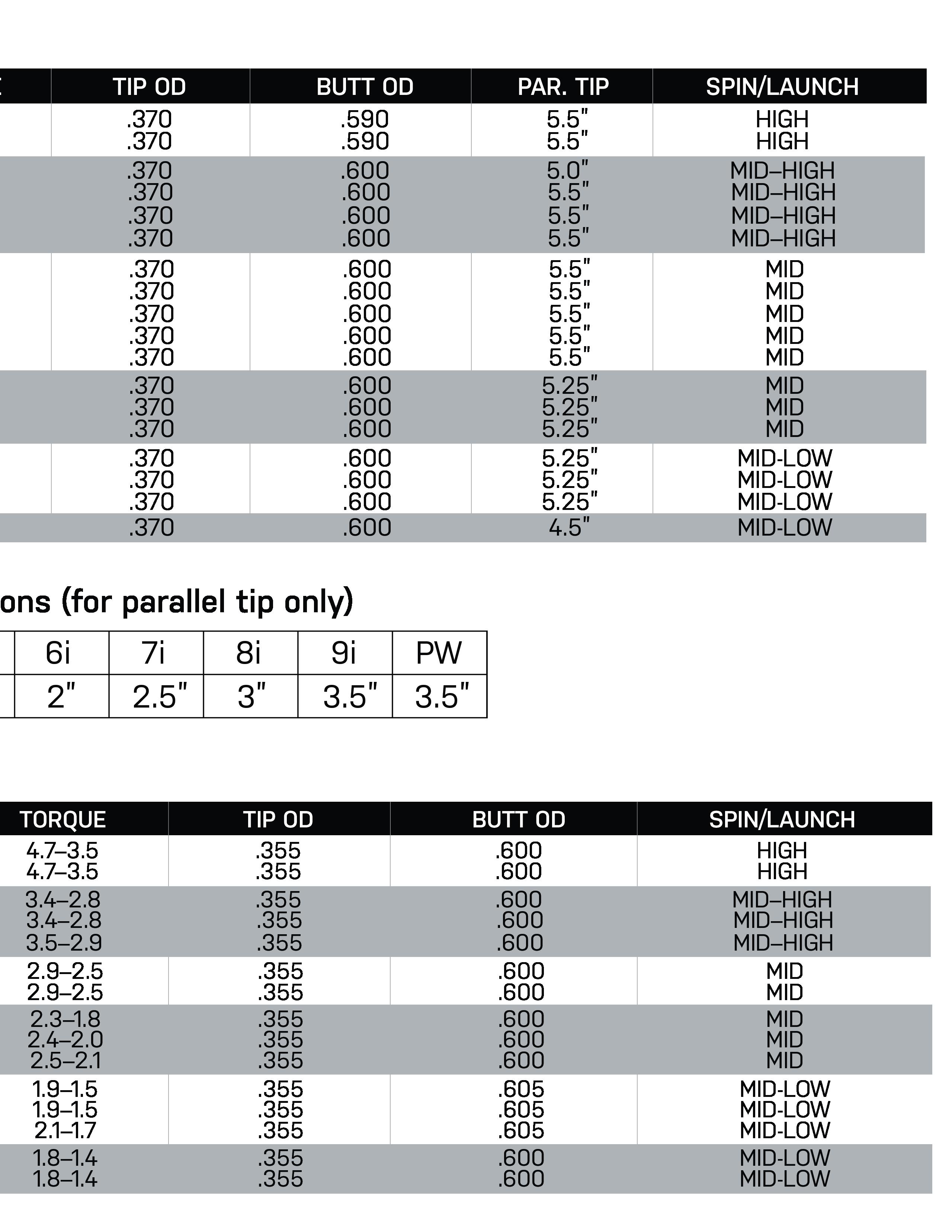 Five parallel weight options with multiple flex o erings for fitters to dial in playability