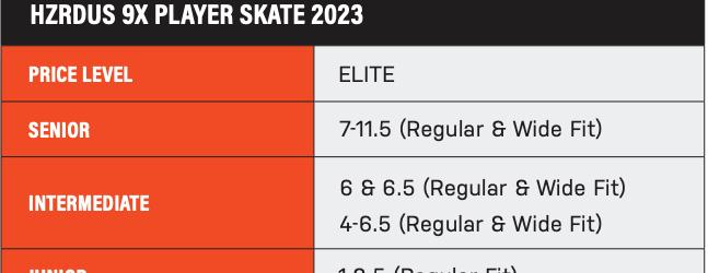 The HZRDUS 9X skate is ideal for elite players seeking best-in-class t and premium performance bene ts that are synonymous with TRUE custom skates in an o -the-shell package.