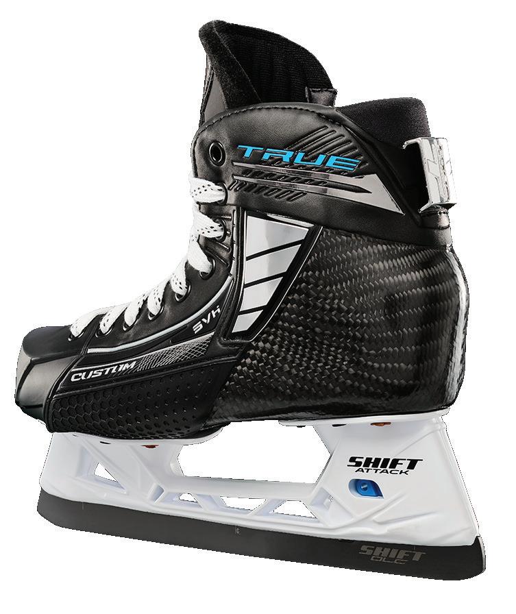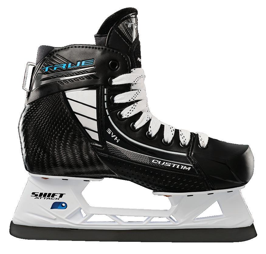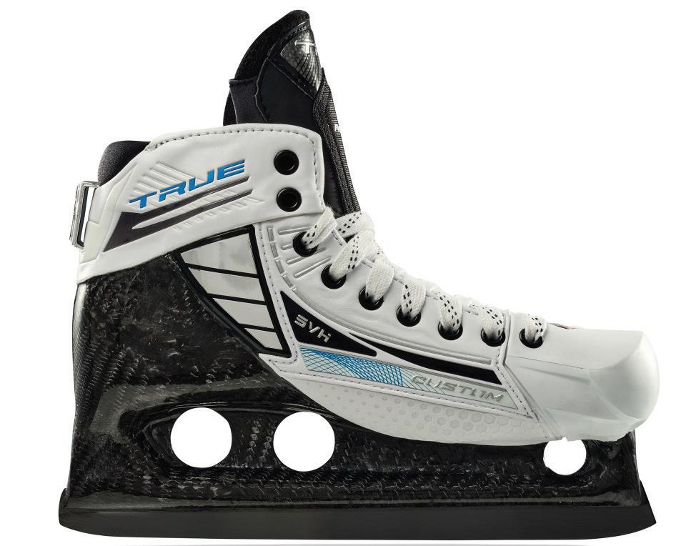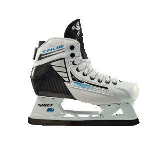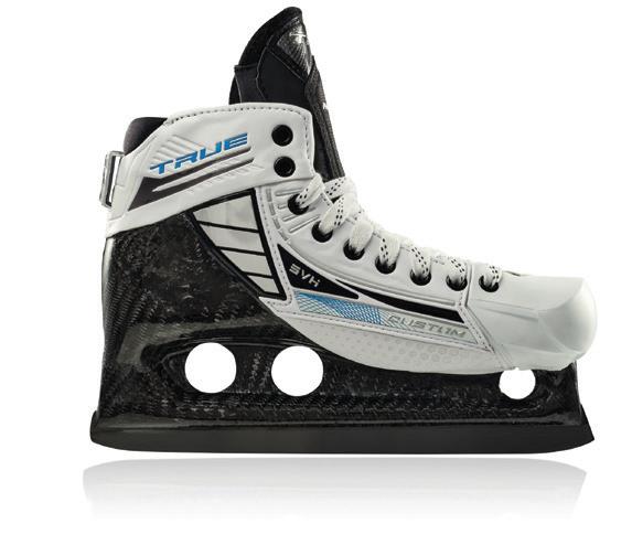 Featuring TRUE’s high-grade carbon ber one-piece goalie shell construction with a low pro le and enhanced side panel for added durability. The patented one-piece goalie skate design for better response and connection with the ice – a benchmark of the goalie skate industry. The improved toe cap o ered in both black and white allows for a more secure connection to the post.