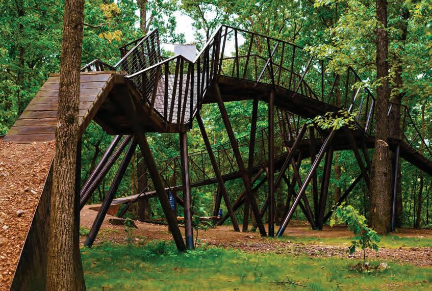 • Nestled in the midst of 120 acres of lush Ozark forest surrounded by trails, sculptures, and gardens