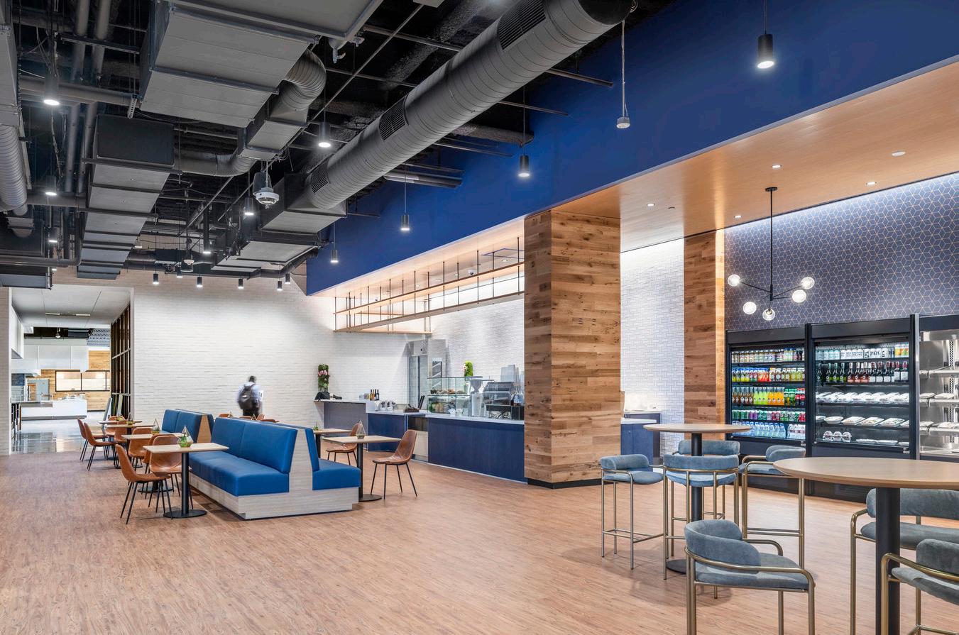 At 60,000sf, the consolidated campus Wellbeing Center identifies five major components under one roof: expanded 19,500sf Fitness Center, dedicated 7,800sf Health Services, plus a lobby and support spaces. The program also called for adjacent outdoor amenities, consisting of recreational sports spaces. The new LEED Platinum, WELL Certified facility creates an aspirational statement with aesthetic elements worthy of a forward-thinking company making best use of the premium center-of-campus location. This project won a 2022 ENR Best Project Award for its design, delivery and project success.