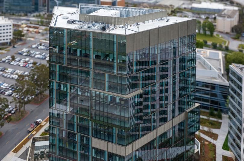 The state-of-the-art facility features an open-office floor plan, conference centers, executive suites, fitness center, full-service kitchen, cafeteria, and an employee break room complete with a 56-screen TV feature wall.