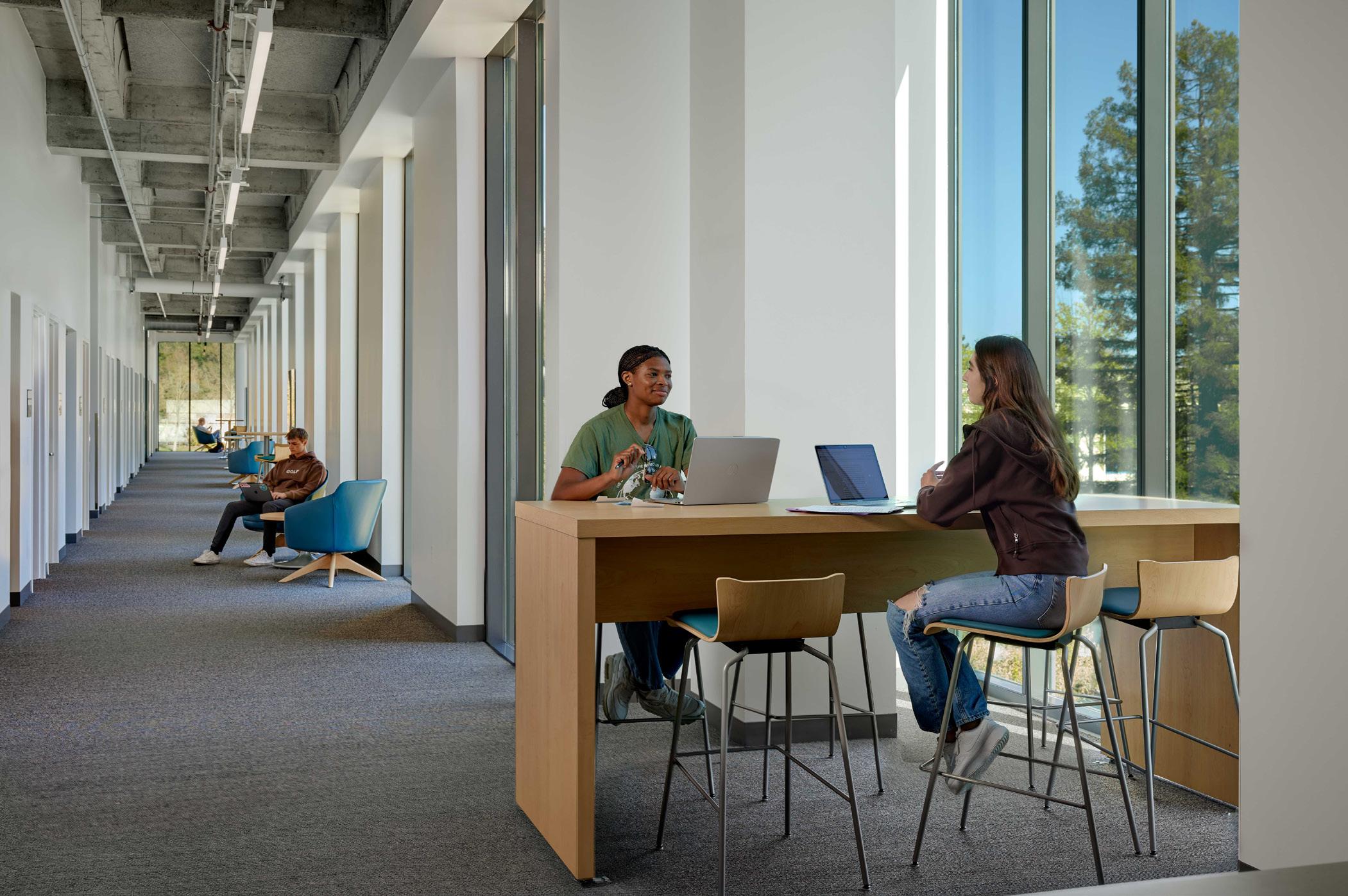 This project was a renovation and seismic upgrade of a 1960s-era university commons building into a modern educational facility with three focal areas: an education core, a student commons with areas for collaboration and student-run businesses; and an industry center with space for professional and academic faculty and program leadership. Sonoma State’s Wine Spectator Learning Center is a state-ofthe-art facility with classrooms and outdoor space to teach 300+, venues for public seminars and events, and technology to reach the world. The design utilizes modern learning and working practices to inspire collaboration for students and visitors. The Student Commons encompass a student hub, a wine entrepreneurship laboratory, an outdoor study terrace and a wine business research library.