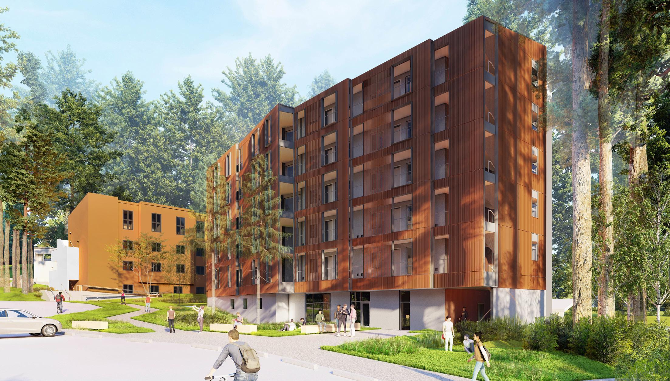 Kresge College is a dynamic, academic student community organized along a ridge in a redwood forest. Kresge students study liberal arts through creative community spaces, interdisciplinary and experimental teachings, and conscientious approaches to living and learning. The Truebeck/ EHDD design-build team will address the University’s urgent need for more student housing and also focus on critical campus repairs and renovation, imminent seismic upgrade requirements, and site accessibility.