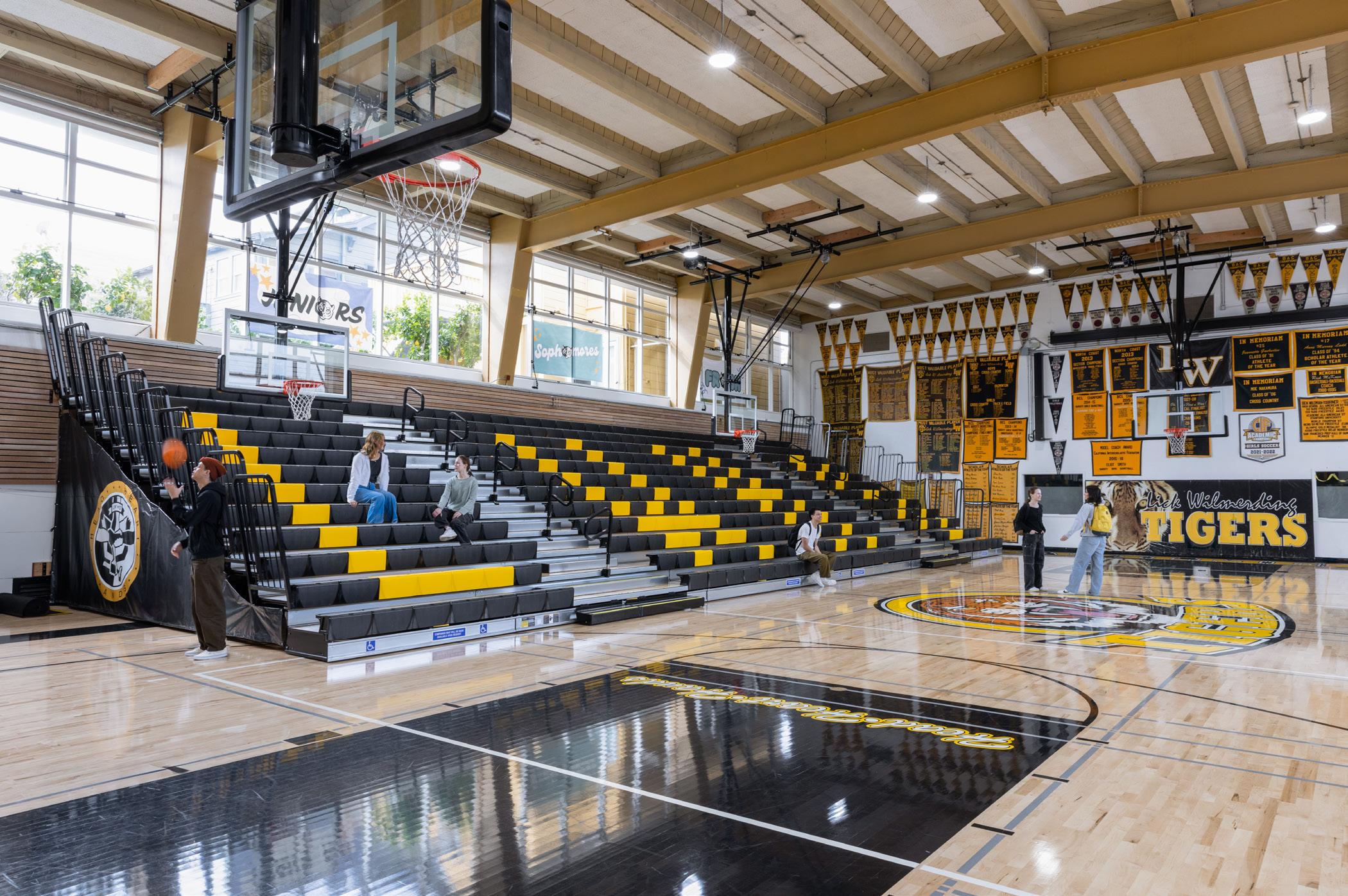 The gymnasium underwent significant renovations, including the replacement of basketball flooring, bleachers, and backstops, along with upgraded athletic equipment. Additionally, all-new electrical systems were installed to support the gym’s enhanced functionality.