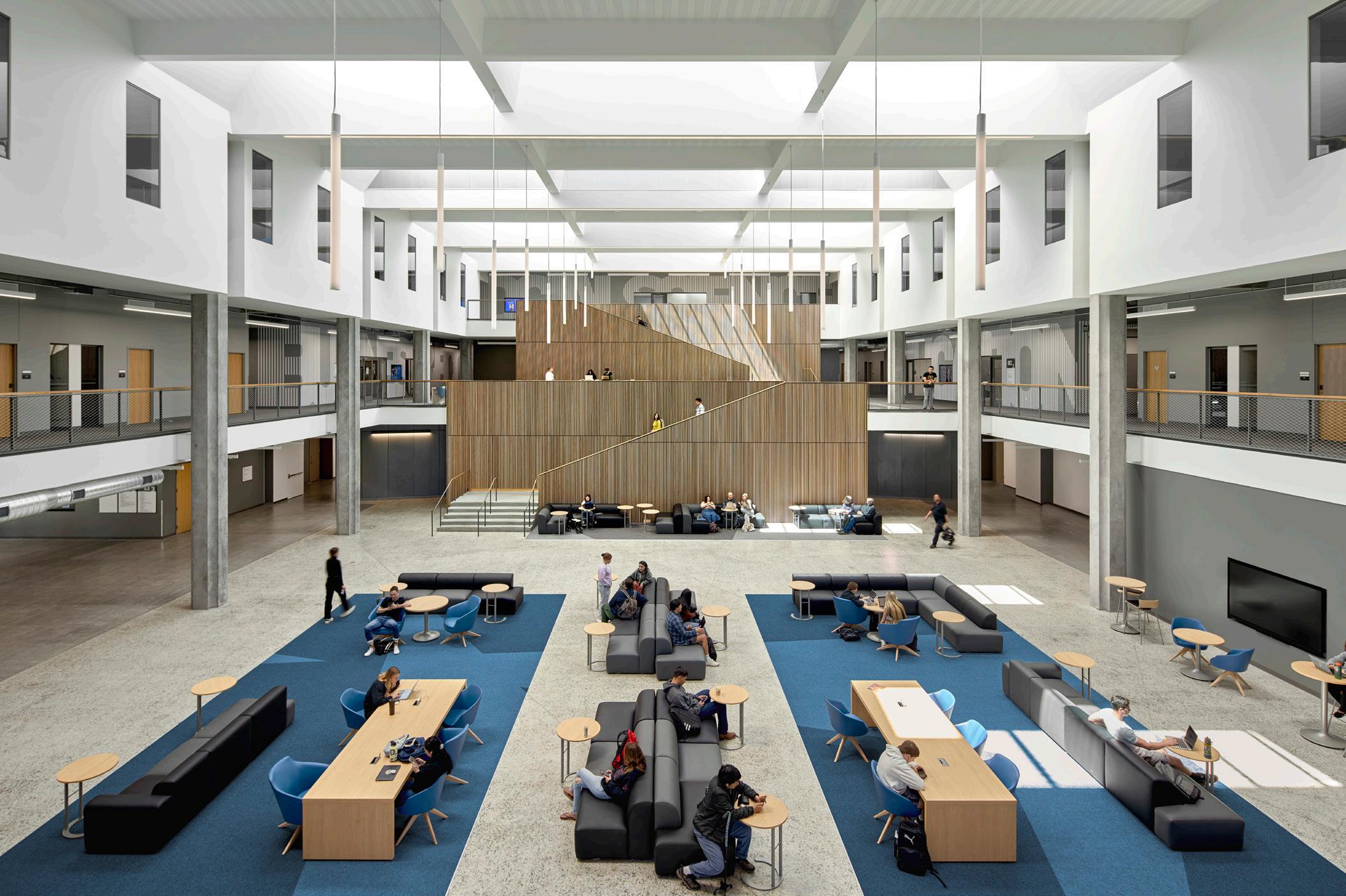 The project also builds a new entry, plaza, lobby and administrative offices at Ocean and Howth streets and renovated part of an existing building to reconfigure and expand science laboratories and technology classrooms. The project achieved LEED Platinum certification, as well as Living Building Challenge Petal certification, a program that requires meeting a series of advanced performance requirements during 12 continuous months of operation. Incorporating Net Positive Energy in its design, the building produces more energy than it consumes.