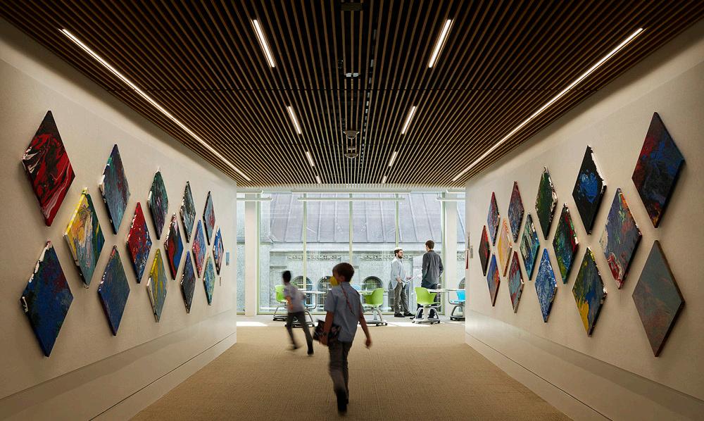 An independent, coeducational, college-prep day school for sixth through 12th grades, Crystal Springs’ 1915 mansion, designed by Willis Polk & Co., is a 47,000sf steel and concrete structure comprised of three levels, a full basement, and an intermediate level in the service wing. The historic renovation includes seismic, MEP, and technology upgrades to meet student and faculty needs and current CA building codes. The new facility includes enlarged classrooms, upgraded energy performance, improved landscaping and parking areas, and comprehensive hardscape and sitework. Rehabilitated interior finishes in the mansion include specialty European fixtures, marble fireplaces and mantles originating from a 16thcentury Italian castle, a 16th-century hand-carved ceiling from northern Italy in the ballroom, and Italian ironwork and German woodcarving throughout.