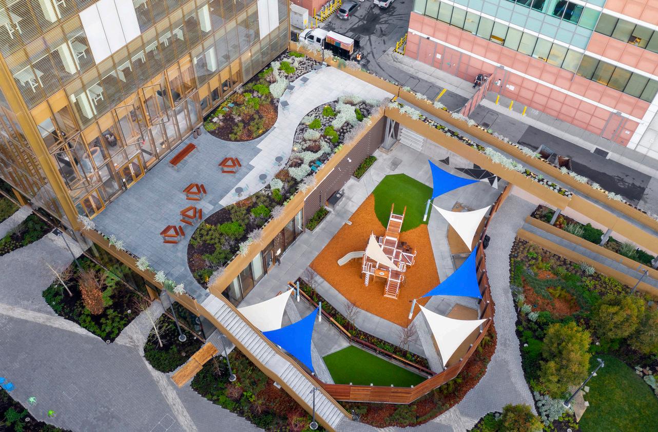 Located within Uber’s new 450,000sf global headquarters in Mission Bay, the 14,941sf early child care center includes dedicated pre-school, toddler, and infant areas with sleeping quarters contained within the infant spaces. The facility also includes large multi-purpose breakout areas, individual micro-kitchens, and a 4,593sf play yard complete with jungle-gym, water features, shade sails, rubber flooring, and art installations. Ginsburg Kershner Associates (GKA) was the childcare consultant for this project as well as in childcare centers for top tech companies like Apple, Salesforce, and Facebook.