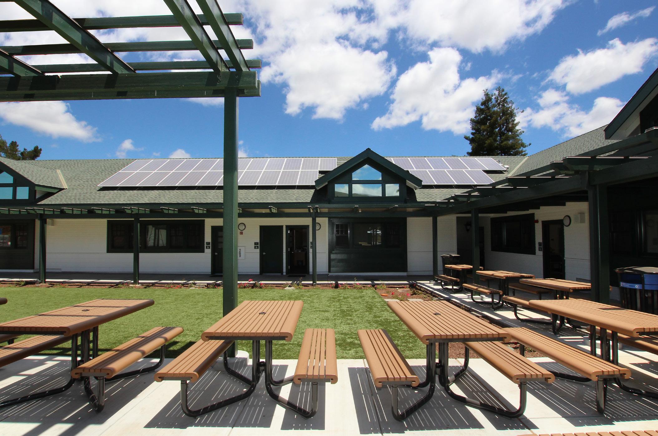 Additionally, Truebeck undertook the extensive site improvements, consisting of two new sports fields, parking area, underground utilities, and a complete creek restoration. The project achieved LEED Platinum and Net Zero certification.