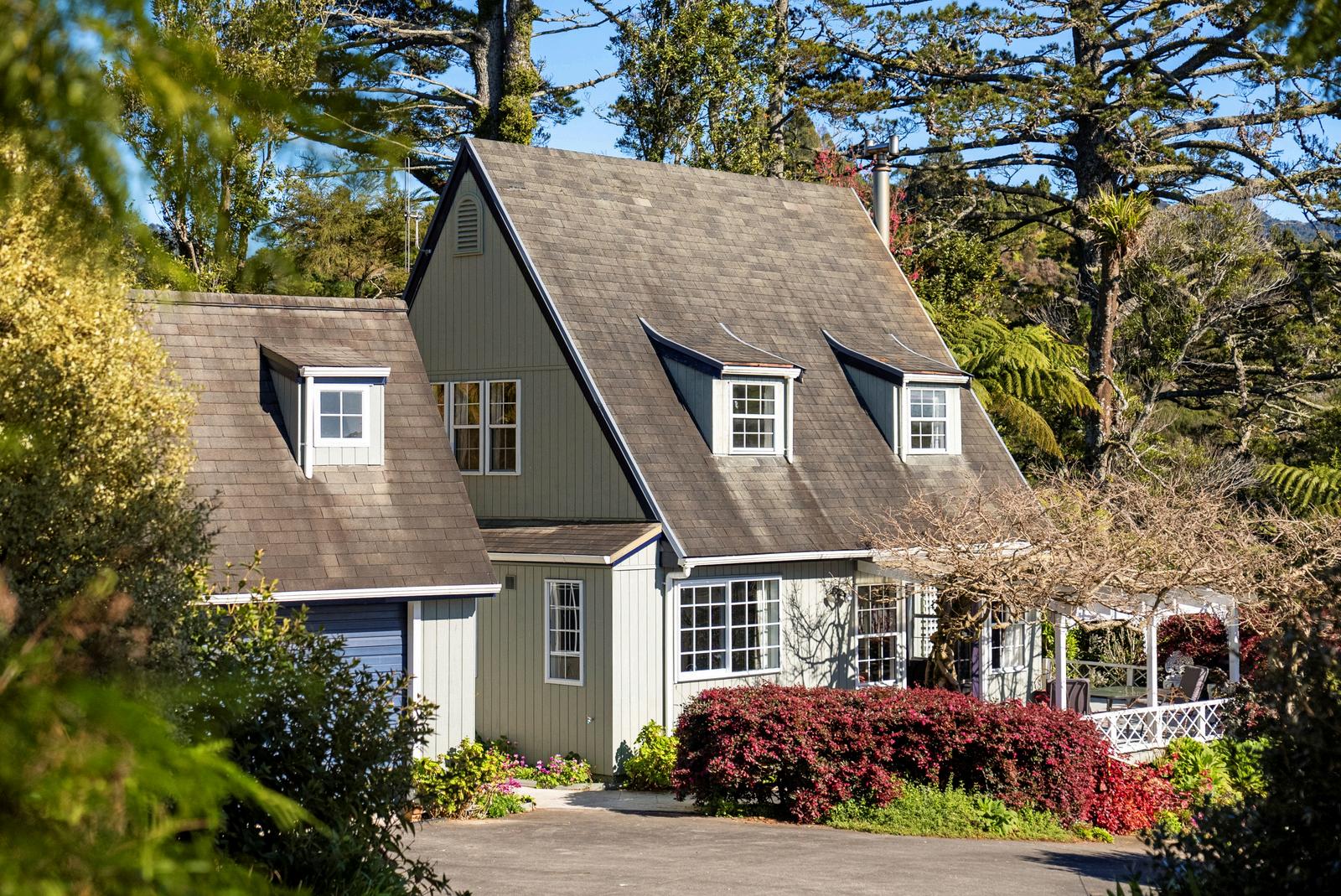 This beautiful property boasts two full size homes, a huge shed, a private, sweeping driveway flanked by native bush, a large lawn area that could double as grazing for the pony and huge views across the Bay