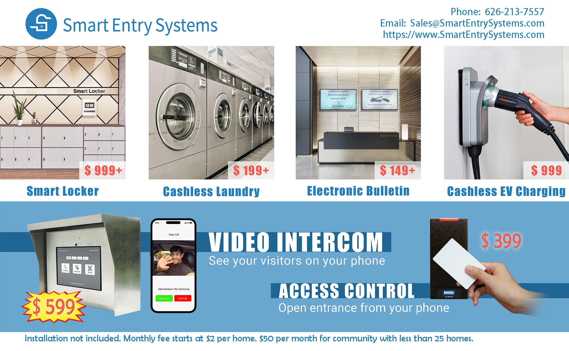 Smart Entry Systems: 626-213-7557; www.SmartEntrySystems.com; sales@SmartEntrySystems.com