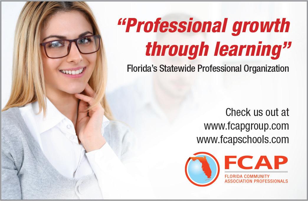 Postmaster Send address changes to: Florida Community Association Journal 1000 Nix Road Little Rock, AR 72211-3235 or email info@fcapgroup.com