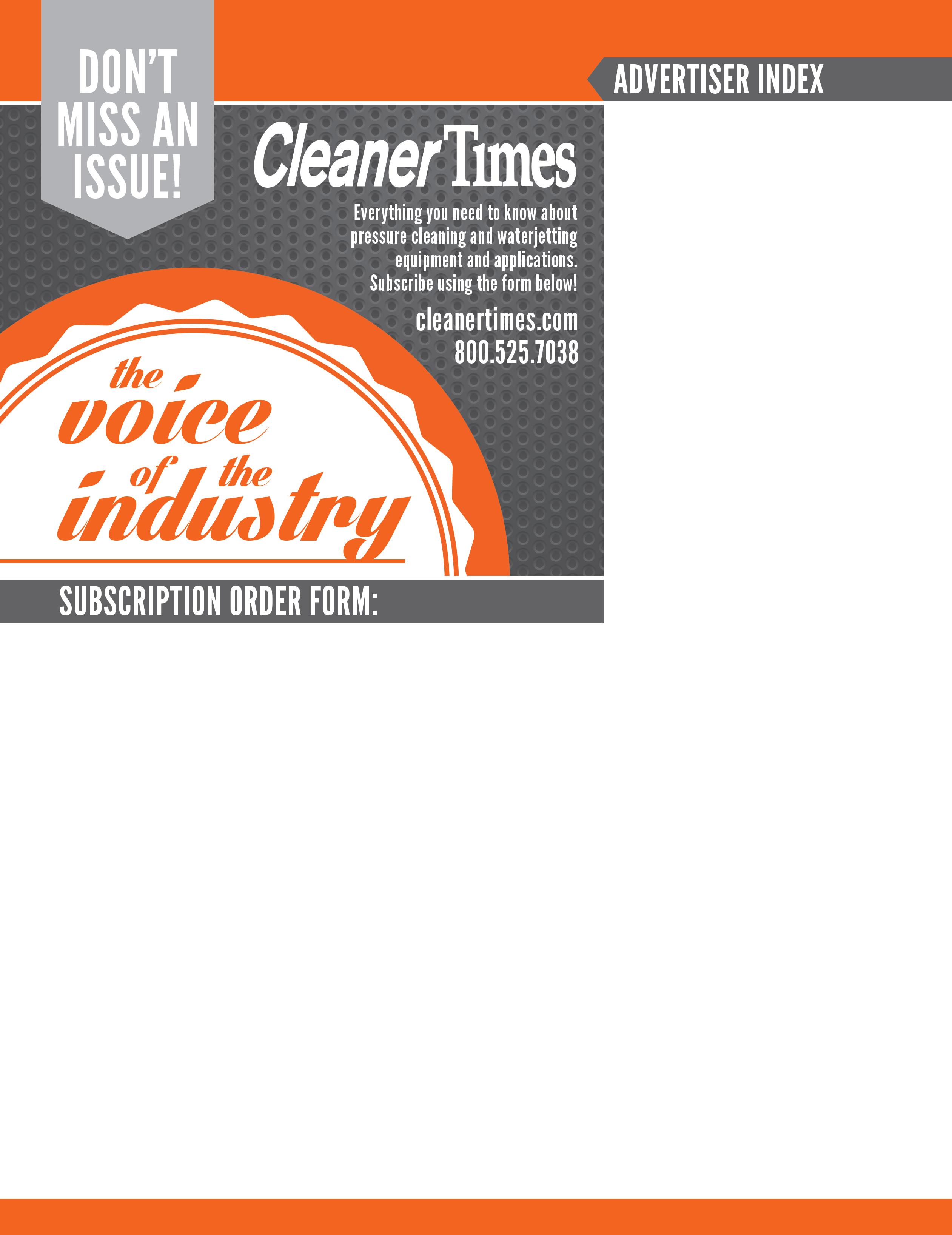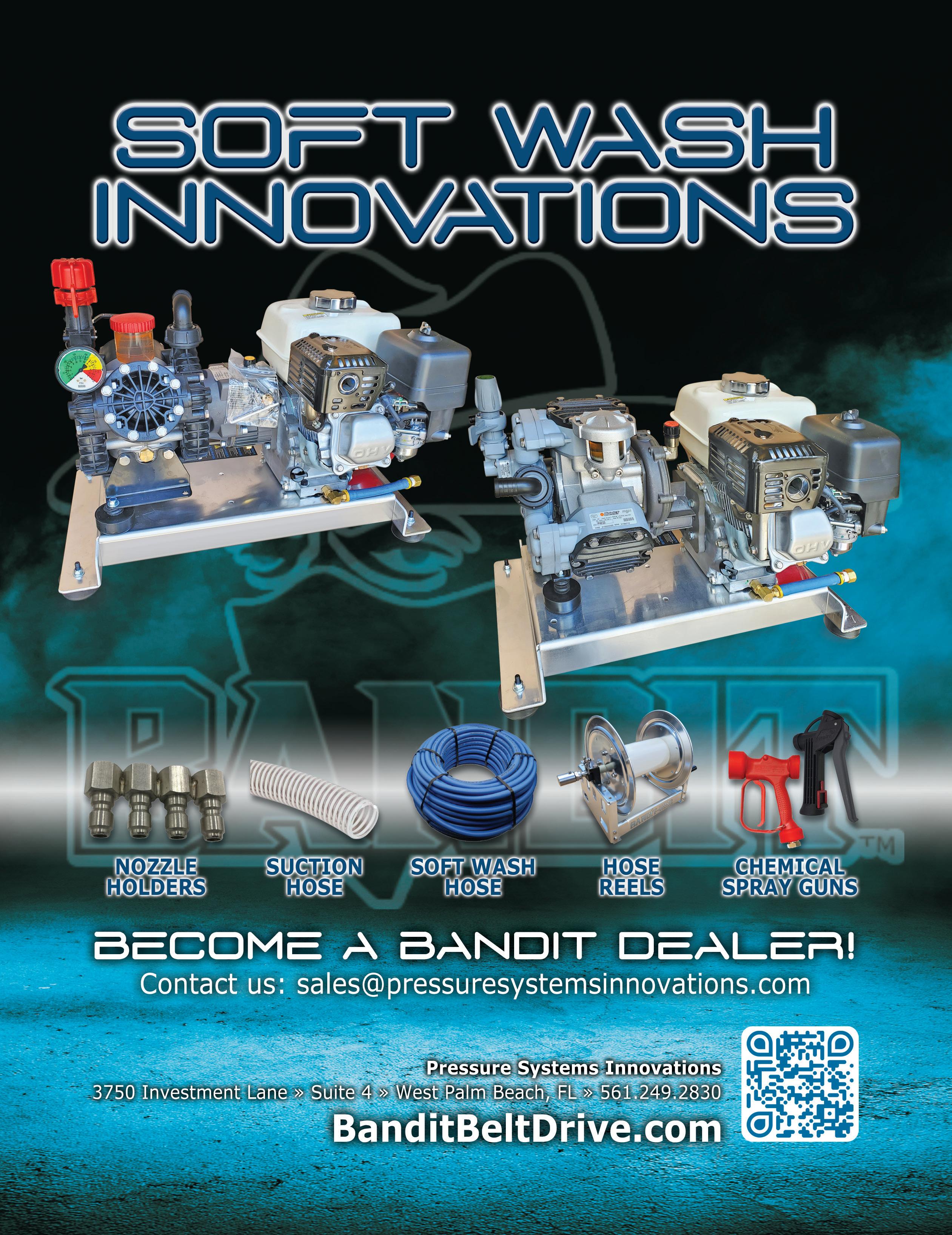 Turn to page 10 to read several mini articles that provide information on multiple pressure washing manufacturers and suppliers who sell the equipment and accessories within the industry. There are also a couple of product highlights.