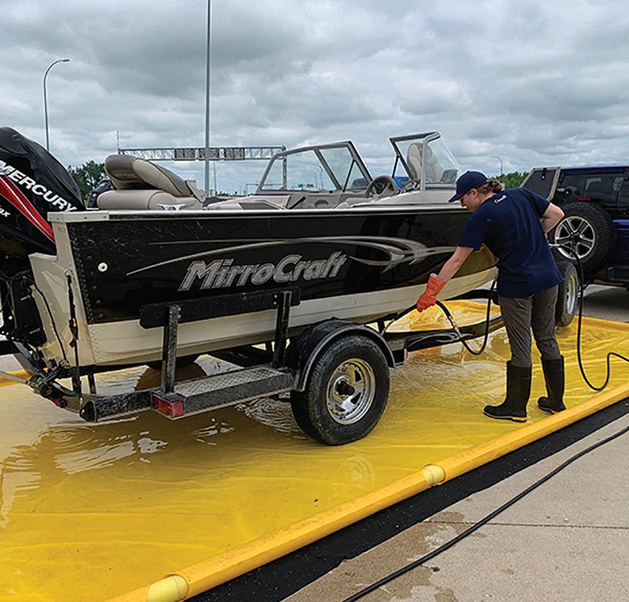 There are many wastewater containment methods, says Latimer. For example, there’s a portable wash pad (easily stored with an electric storage reel mounted on a wash truck or building wall). The many other configurations include drain blockers, magnetic rail mats, and dike systems. Latimer’s company offers them all.