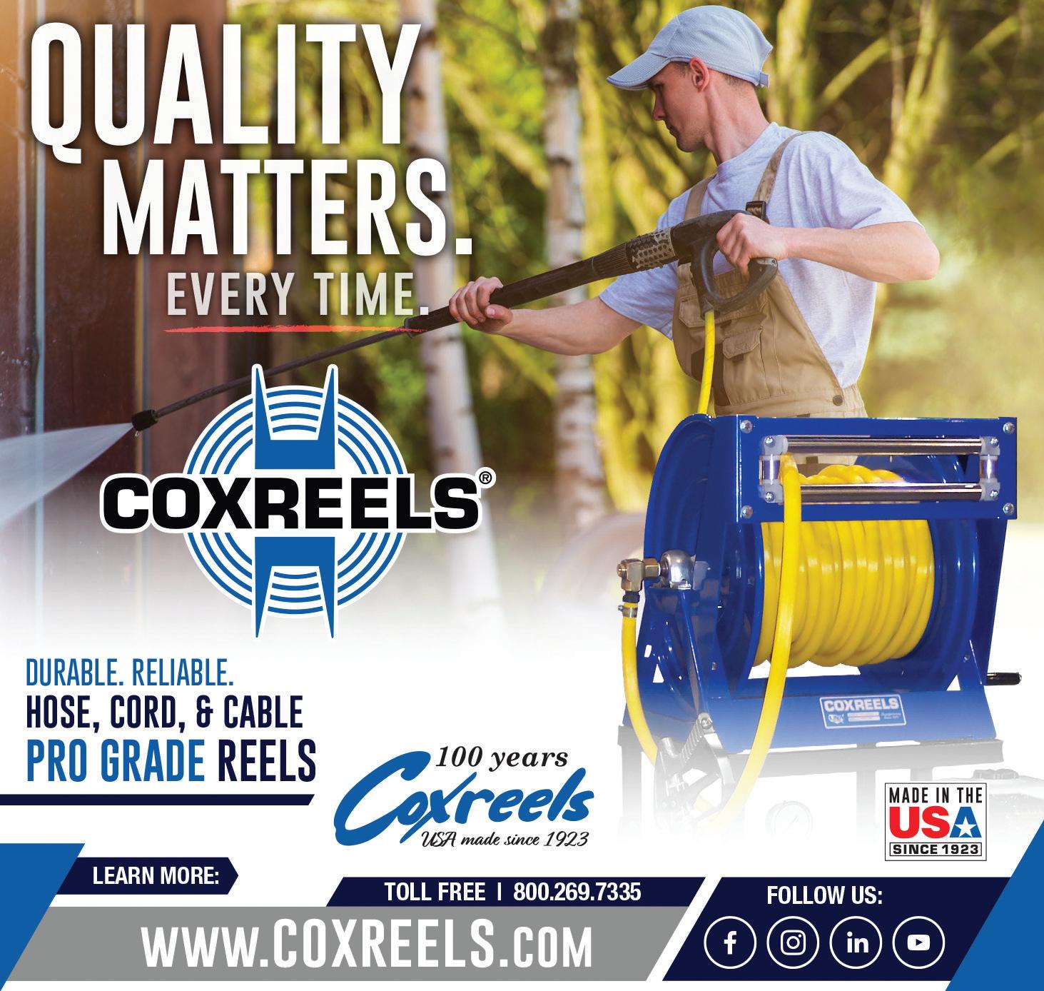 Alexander’s company is a U.S. manufacturer of highpressure hoses. On his list of core criteria for high-pressure cleaner hoses are the following: durability and abrasion resistance, ease of handling (flexibility), ease of storage retractability—including reel compatibility, pressure rating, and safety—including the “must” of burst protection, temperature resistance, chemical resistance, connection integrity, length options, cost/ value balance, and warranty and brand trust.