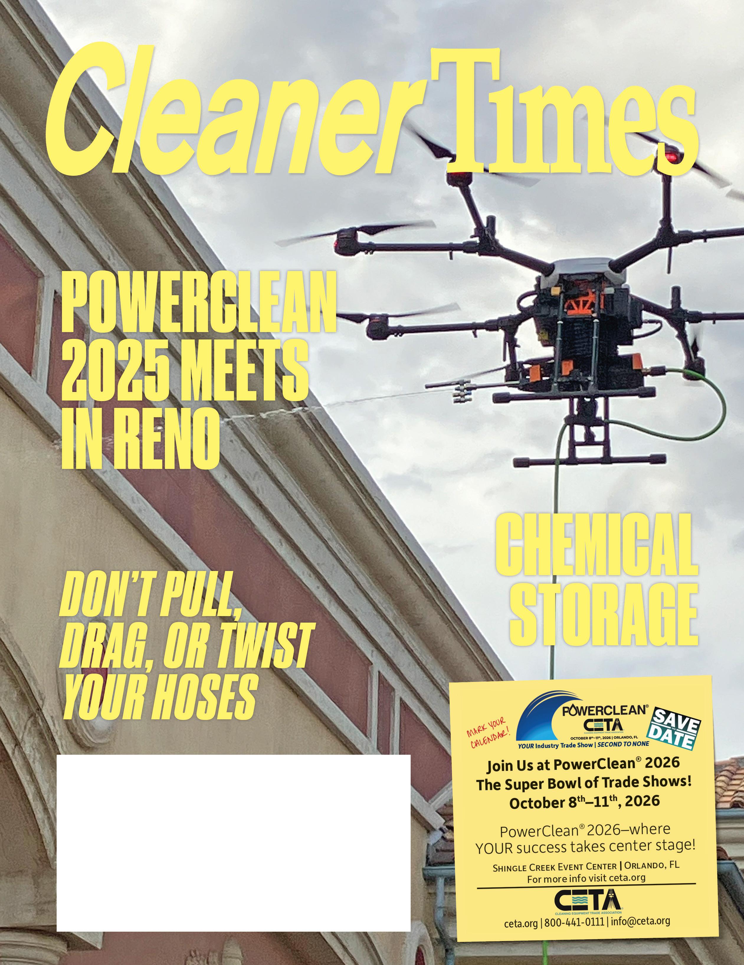 It was wonderful to talk with many of you at PowerClean 2025 in Reno, NV. The golf tournament, Women of CETA, and especially the kickoff comedian were all enjoyable and were good opportunities to catch up on life and laugh together. The outside demonstrations were a wonderful opportunity to see multiple advances in technology and imagine the assistance these advances will provide. The educational seminars were informative and thoughtprovoking, and it was beneficial to see so many of the pressure washers and accessories on the tradeshow floor. It was exciting to have the inaugural 2025 CETA Manufacturer Innovation Award winner announced and presented with an awards plaque on the tradeshow floor. Cleaner Times trusts that you also benefited from the various networking opportunities, learned new steps to take in your business via the educational classes, and made plans to add to your equipment inventory while walking on the tradeshow floor or observing the live demonstrations. Turn to page 12 to see the event in photos, and make plans to attend next year’s PowerClean in Orlando, FL, Oct. 8–11.