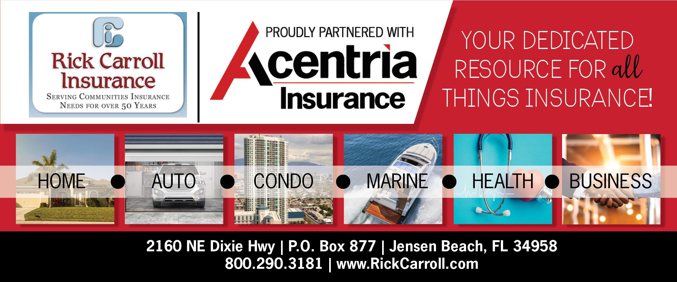 Rick Carroll Insurance 2160 NE Dixie Highway Jensen Beach, Florida 34958 800-290-3181 or 772-334-3181 www.rickcarroll.com