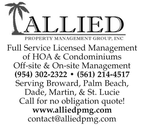 Copyrighted by Florida Community Association Journal. Reproductions of any part of this publication without written permission of the publisher are prohibited.