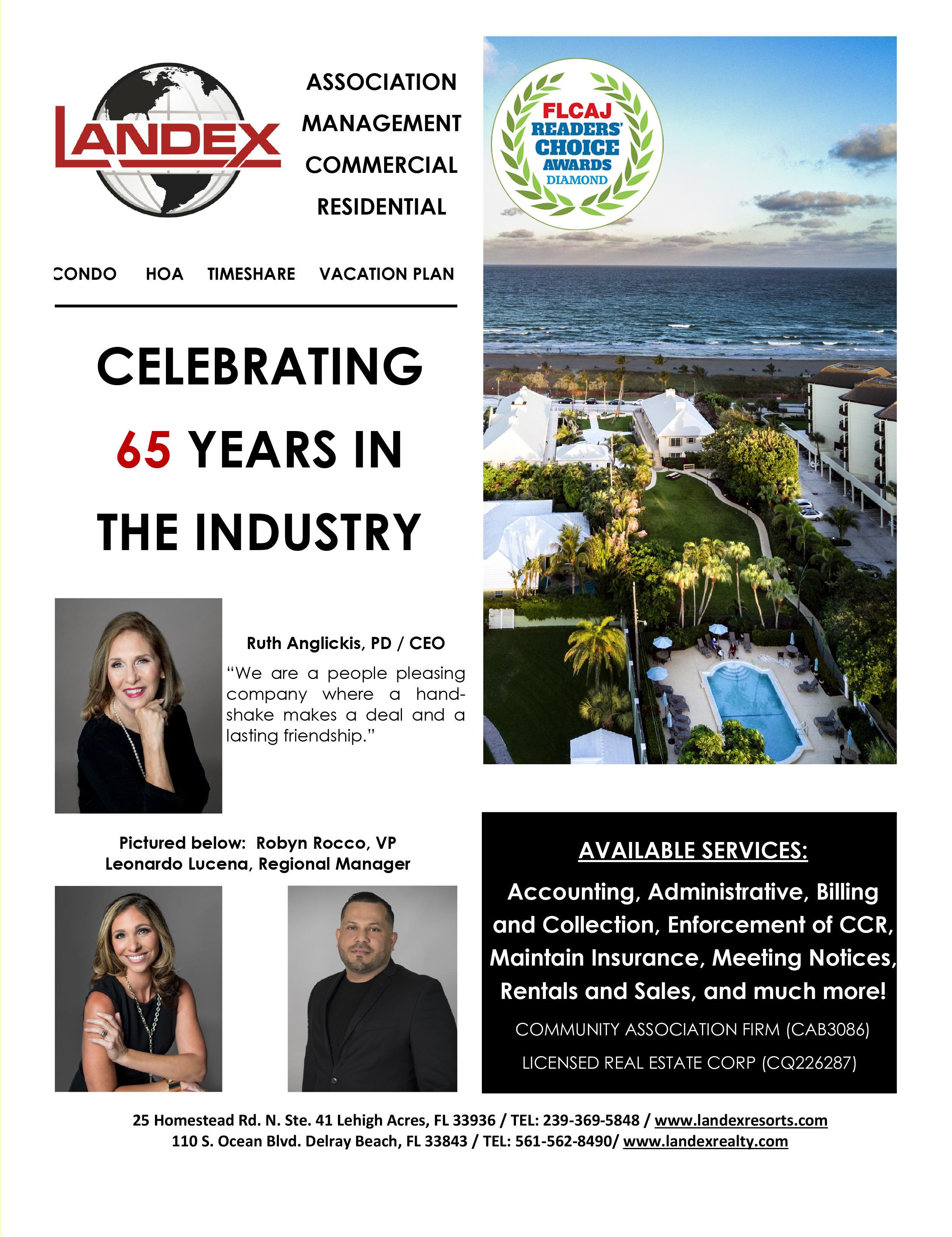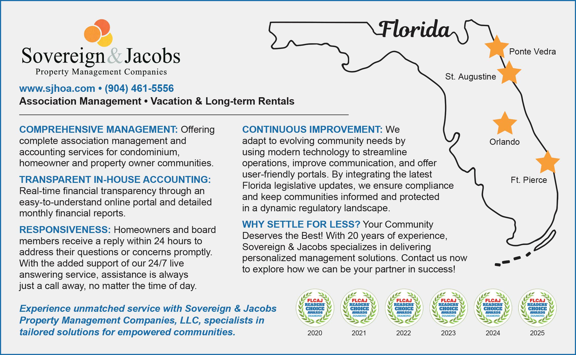 How does that affect you? How do you screen out the unreliable kind of businesses? By referrals, by experience, and by seeing who else thinks they are amazing! That is the purpose of this issue. The service providers represented in this issue are the tried and true. They are the ones who have served Florida community associations for a while or have simply listened to those communities, identified their needs, and were able to satisfy those needs with an excellent product or service.