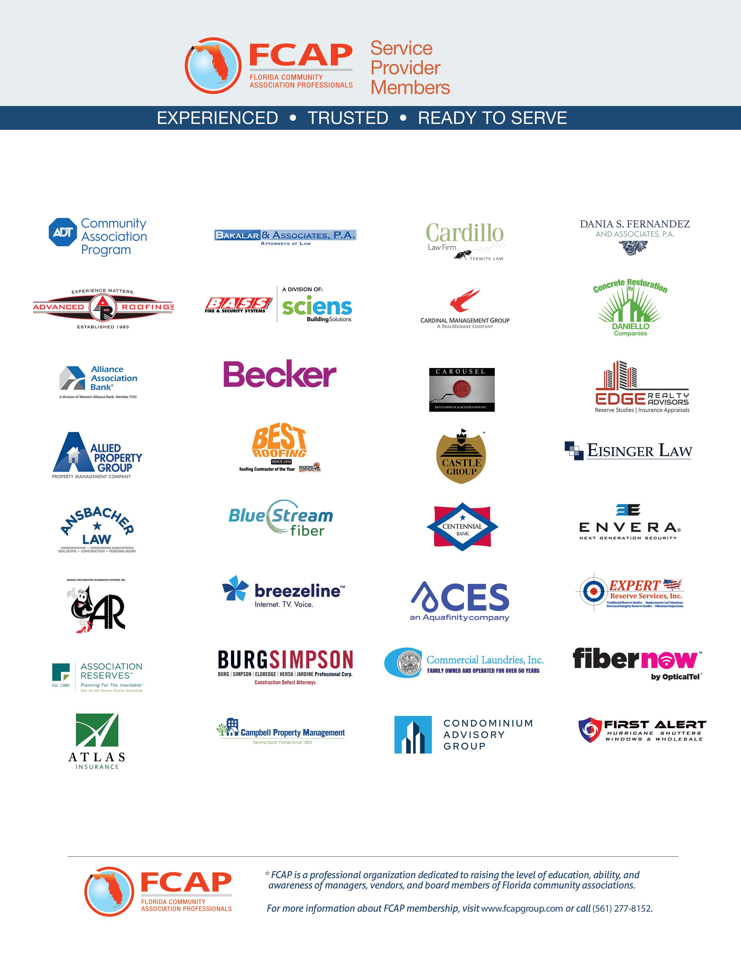 Florida Community Association Journal is excited to present these winning service providers, who were selected by you, as those companies that work primarily with community associations and do it well!