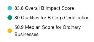 B Corp is an amazing tool to recognise that there is so much more we can do. The certification process confirmed that we are already operating our business to high standards from a social, environmental and governance perspective. However, it has also enabled us to identify not only our strengths as a company but also our weaknesses and where we need to improve, which we can now start focusing on. Certified B Corps are required to go through a recertification process every three years in order to retain their status, and our aim is to improve on our overall score of 83.8 in the next three years.