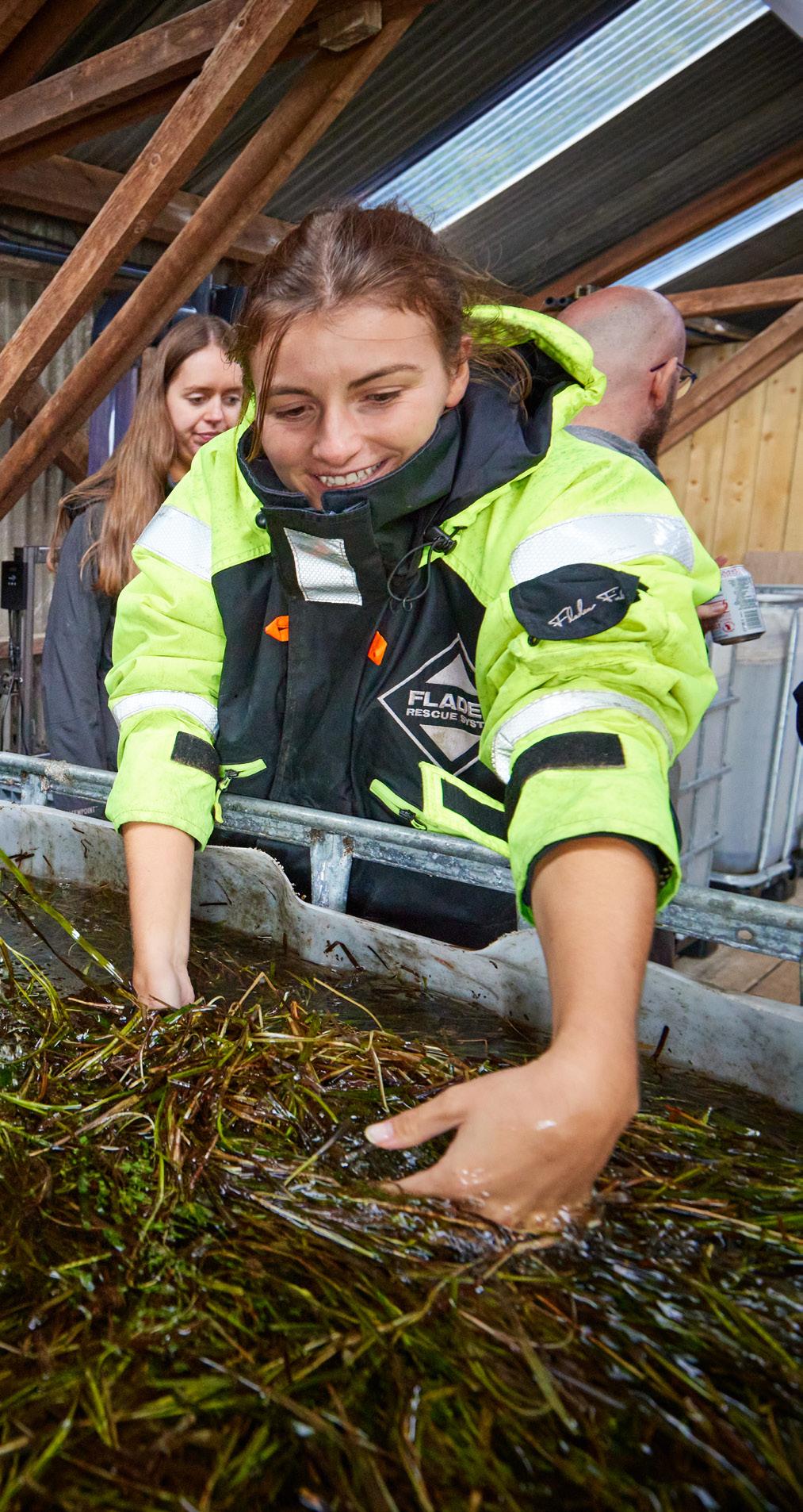 Head of Europe, Molly, filtering seagrass seeds at the Seawilding HQ in Loch Craignish, Scotland